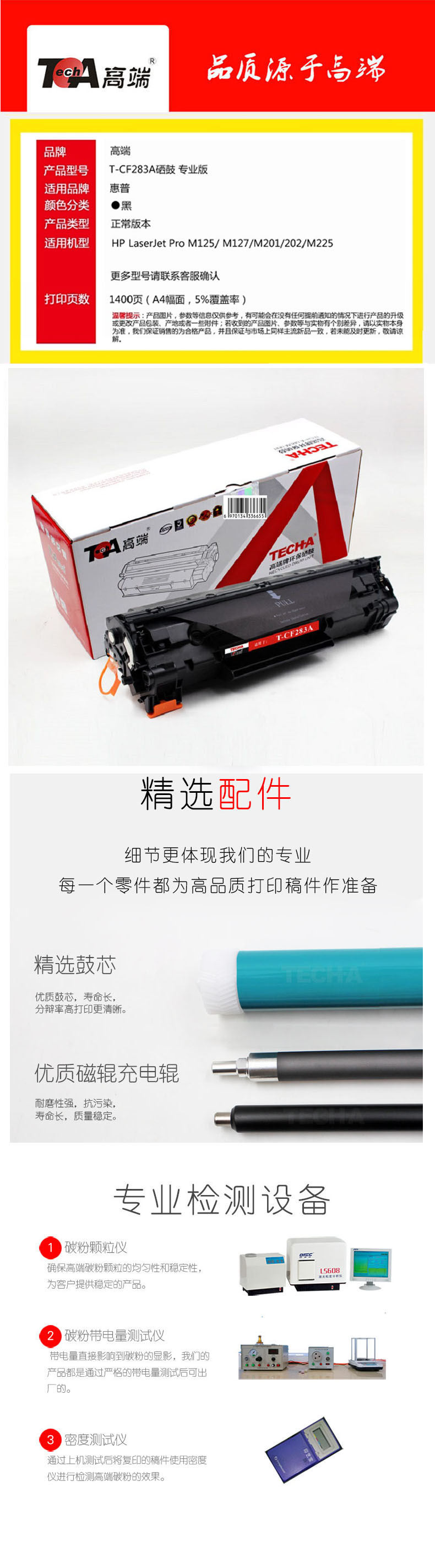 高端(TECH-A)T-CF283A硒鼓适用惠普HP83A硒鼓CF283A M127FN硒鼓 M126FN M125nw碳粉盒 黑色