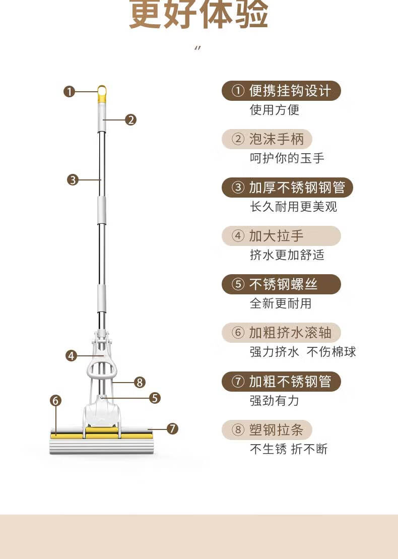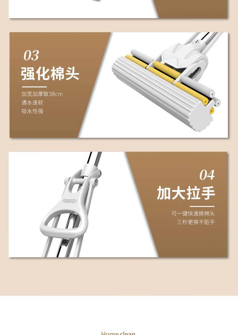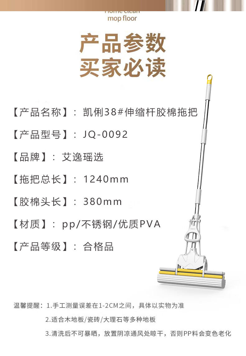 艾逸瑶选 JQ-0092 1240*380mm 伸缩杆胶棉拖把 白色(单位:个)
