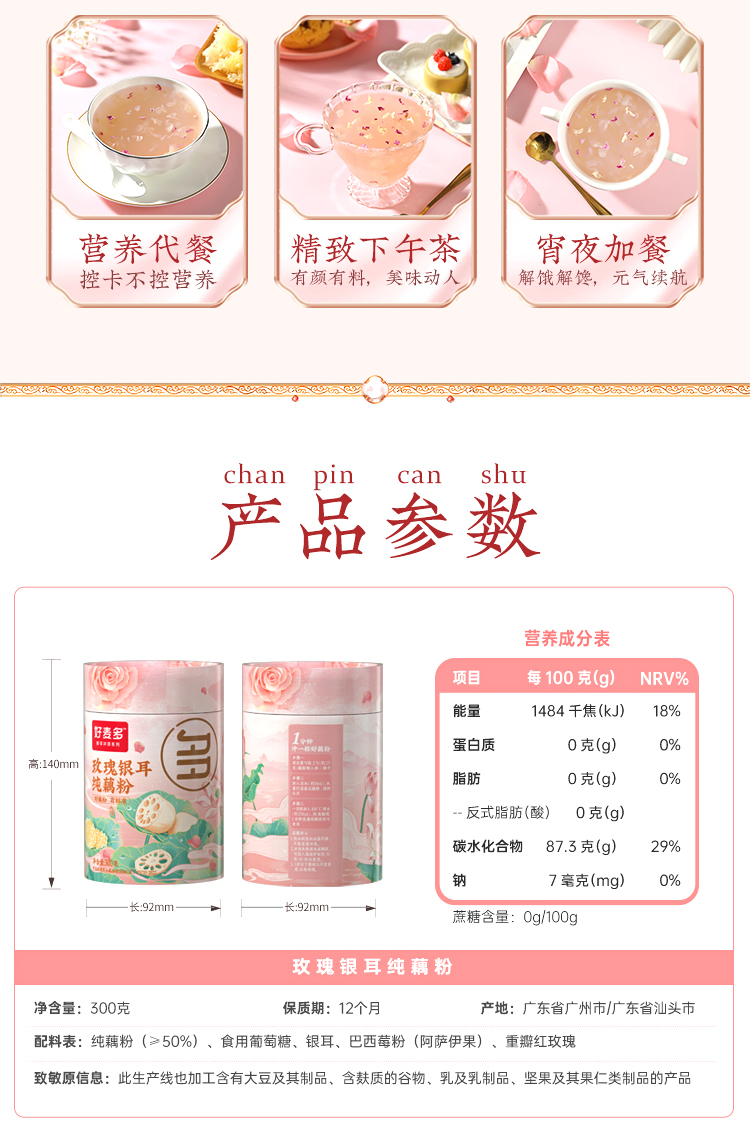 好麦多(HONlife) 桂花莲子玫瑰银耳藕粉 HCS023 300g 粉色(单位:罐)