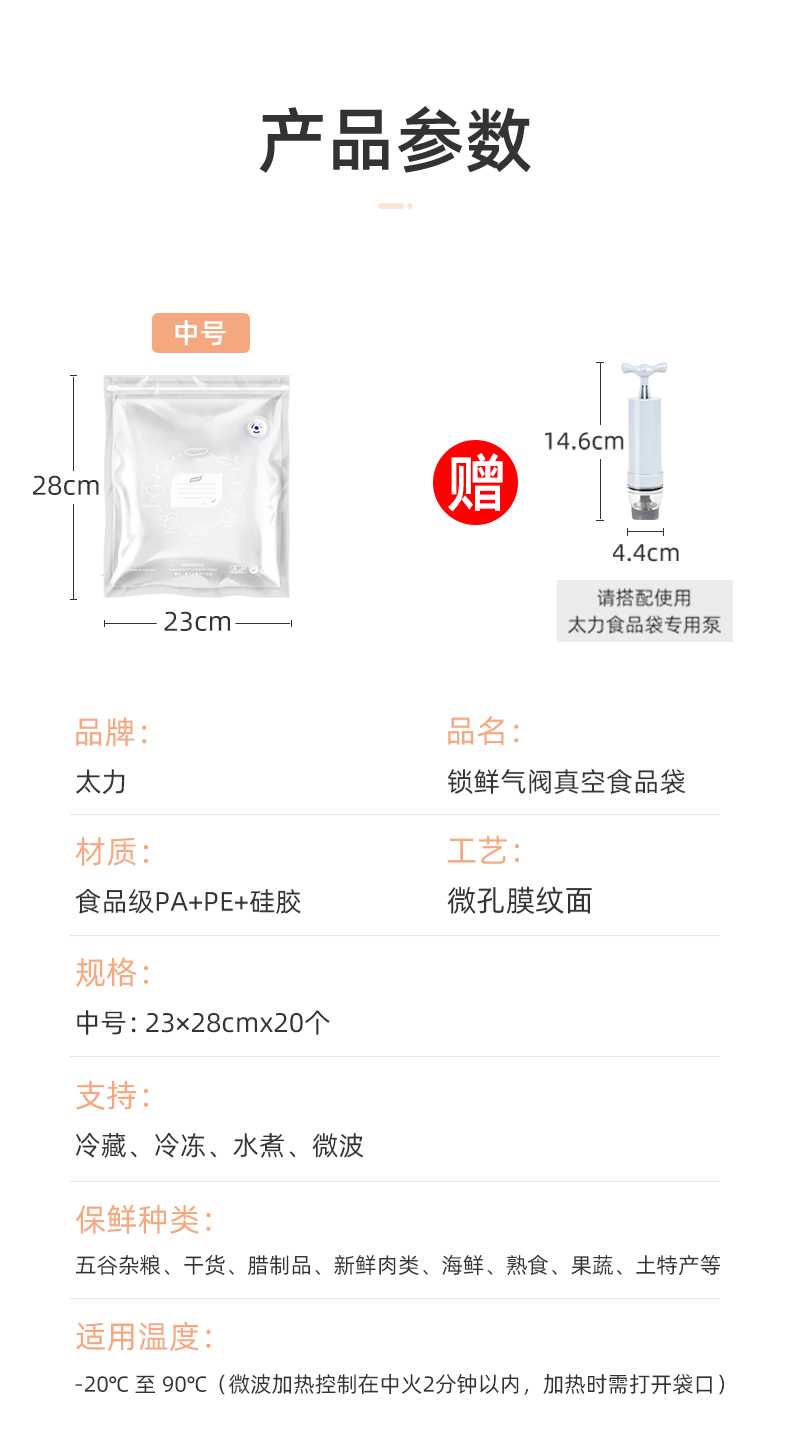 太力真空食品袋 保鲜抽真空密封袋压缩袋外出口罩收纳 20中配泵SP105(单位:包)