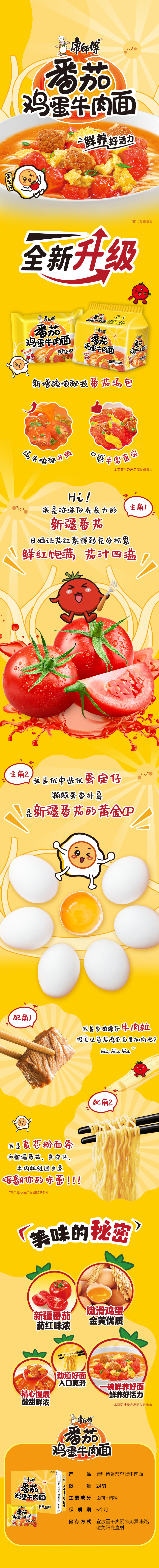 康师傅经典方便面【桶】 番茄鸡蛋牛肉面126g*12桶 黄色