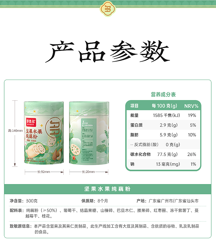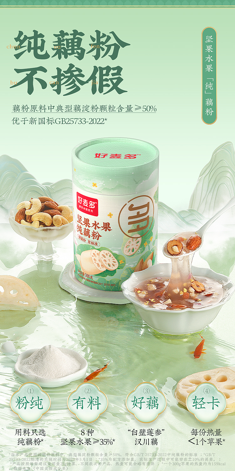 好麦多 坚果水果纯藕粉300g 早餐代餐冲饮即食纯藕粉(单位:罐) 绿色