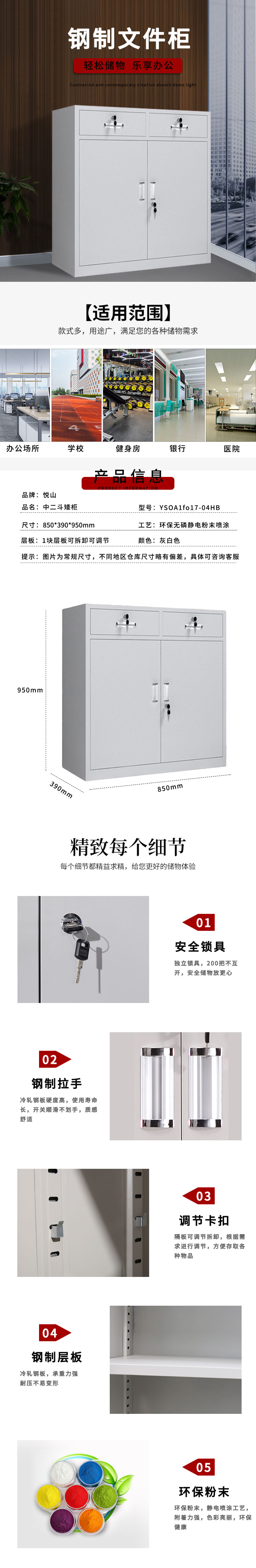 悦山 文件柜铁皮柜钢制 中二斗矮柜 常规款850*390*950*1台 灰白色