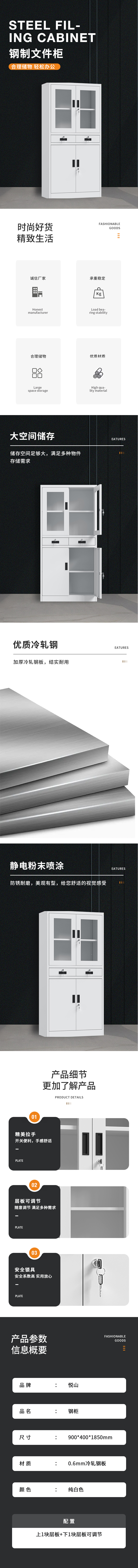 悦山纯白文件柜 中二斗柜900*400*1850*1台 纯白