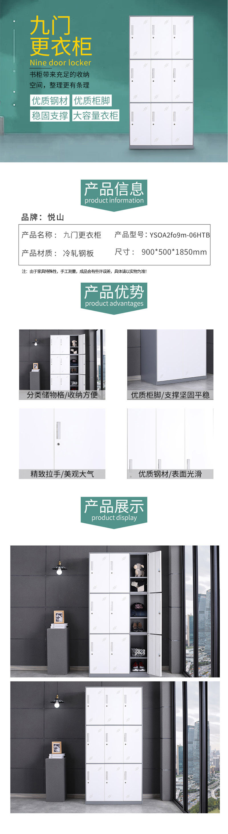 悦山 九门更衣柜员工柜办公室柜900*500*1850*1台 灰套白