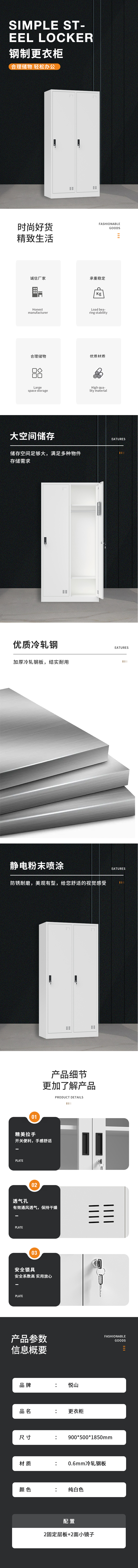 悦山纯白更衣柜 2门衣柜900*500*1850*1台 纯白色