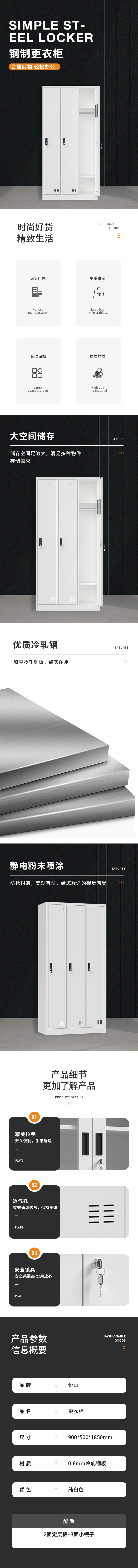 悦山纯白更衣柜 3门衣柜900*500*1850*1台 纯白色