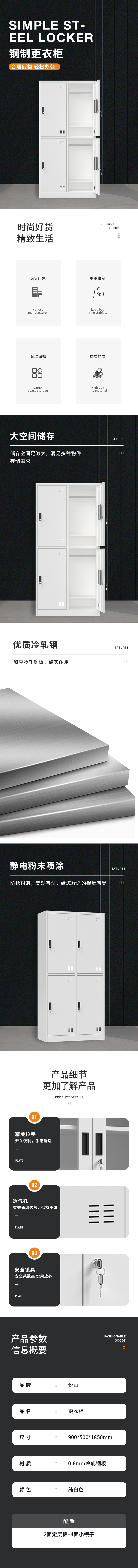 悦山纯白更衣柜 4门衣柜900*500*1850*1台 纯白色