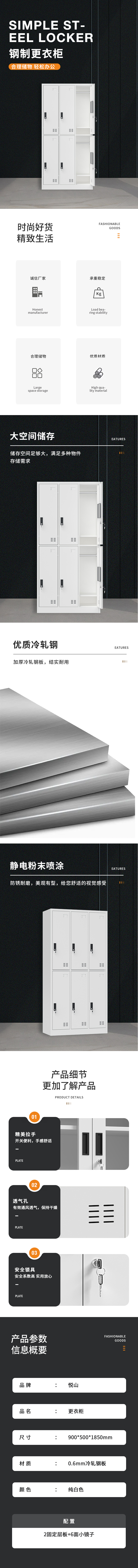 悦山纯白更衣柜 6门衣柜900*500*1850*1台 纯白色