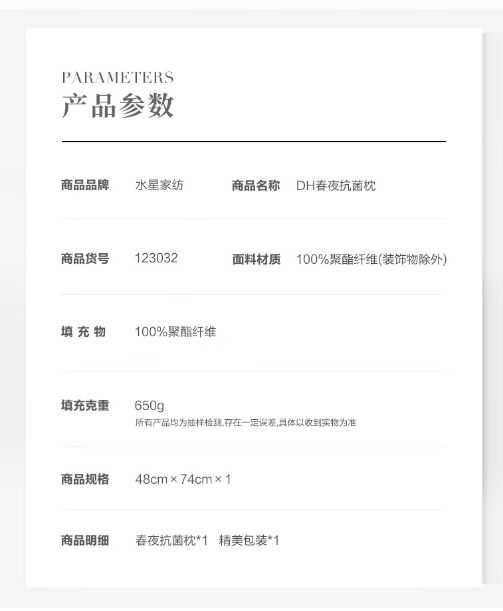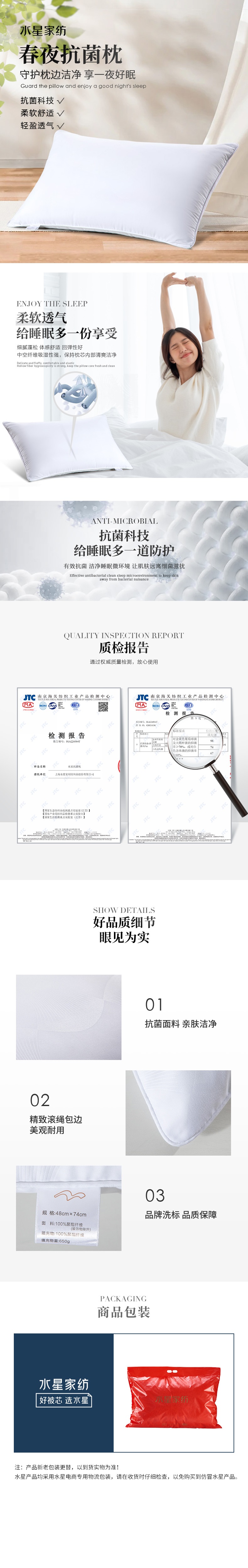 水星家纺春夜抗菌枕123032(单位:只) 图片色