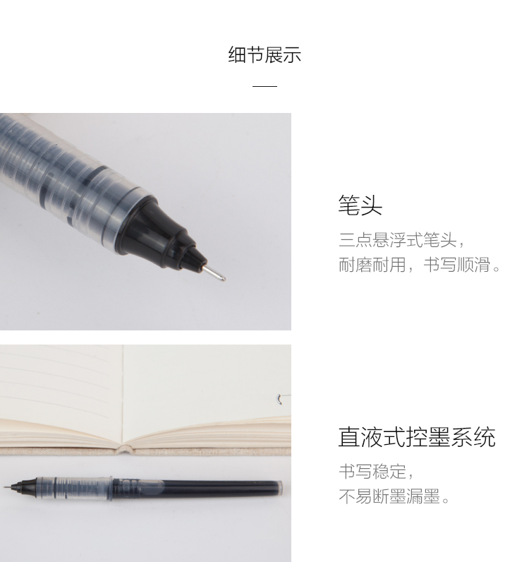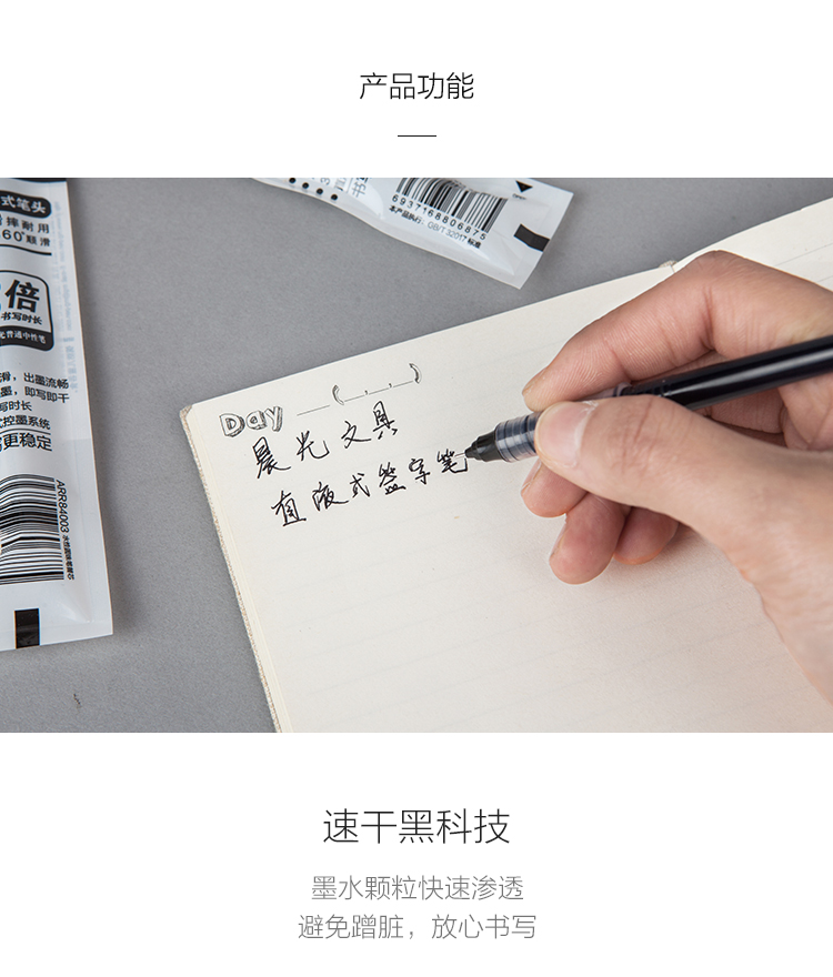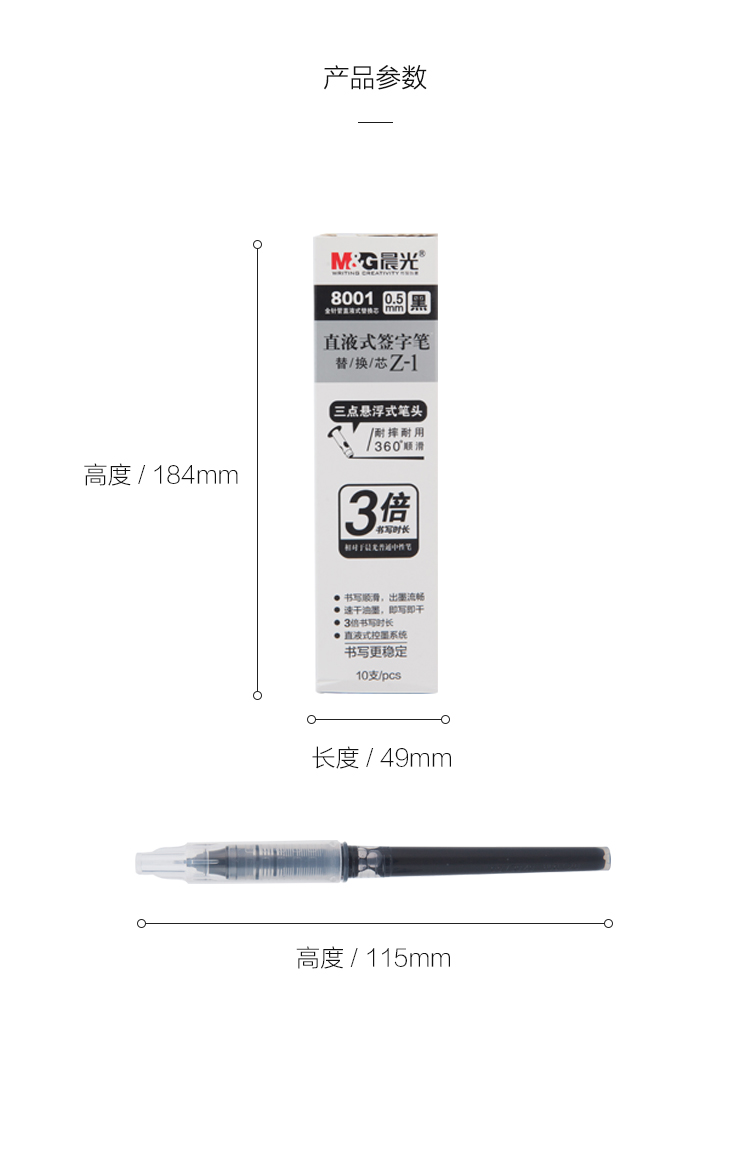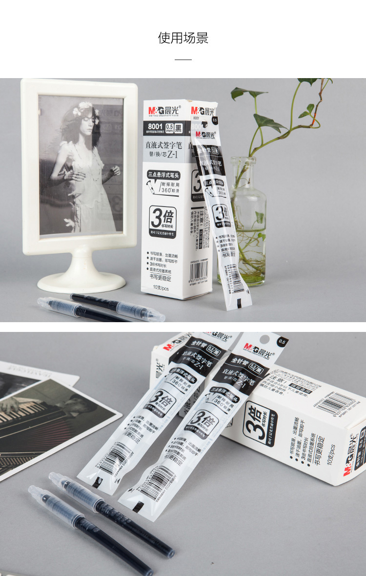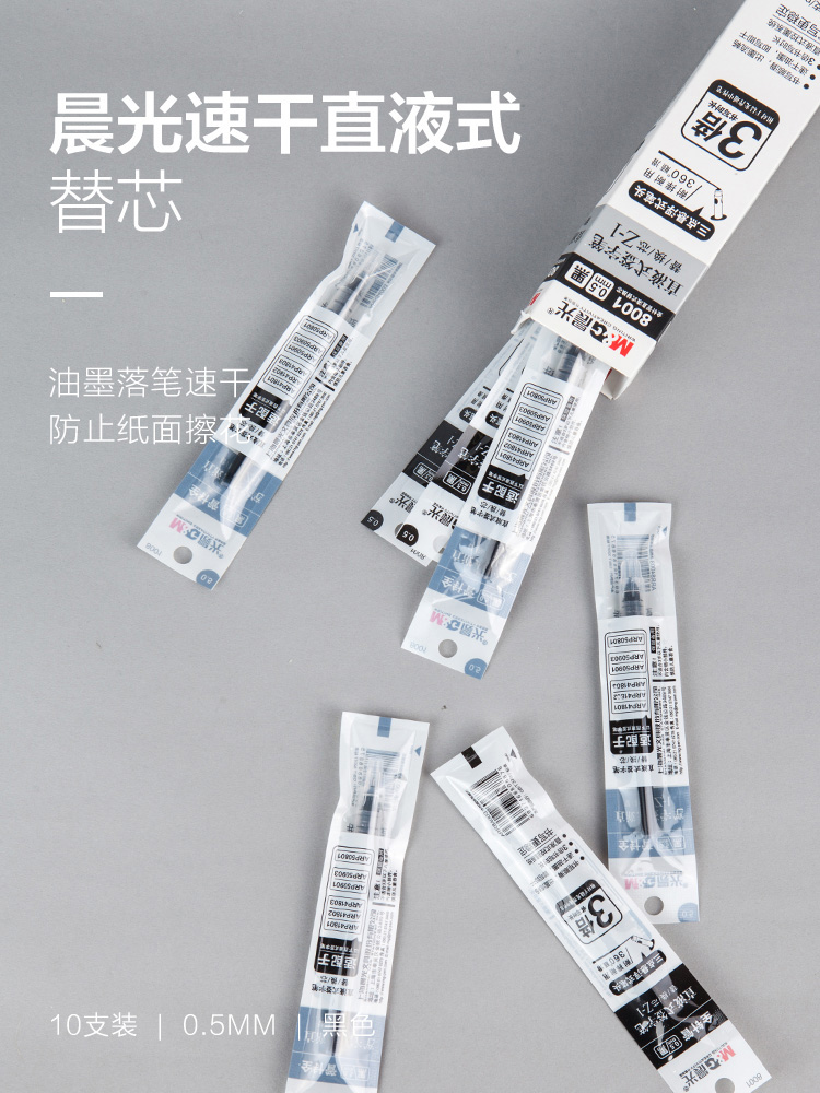 晨光(M&G)文具0.5mm黑色直液式速干中性笔芯 学生考试签字笔替芯 优品系列水笔芯 10支/盒8001