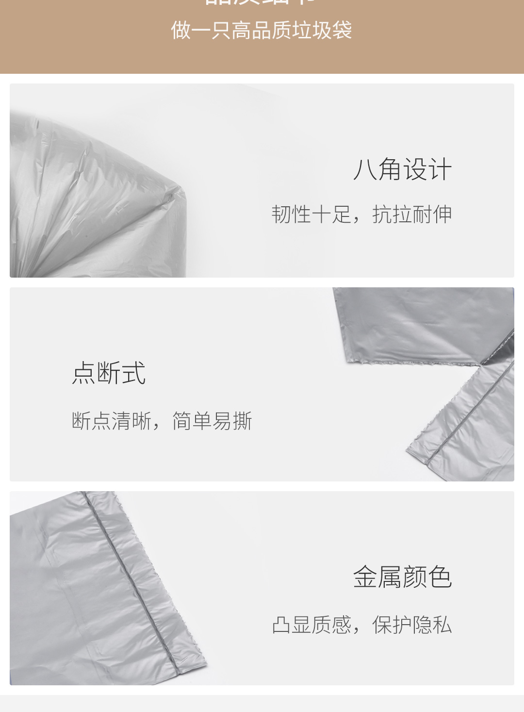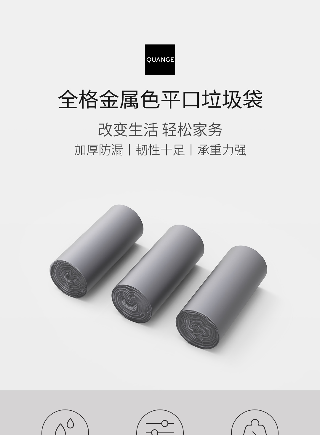 全格金属色平口垃圾袋(25只*3)3卷/袋(单位:袋)