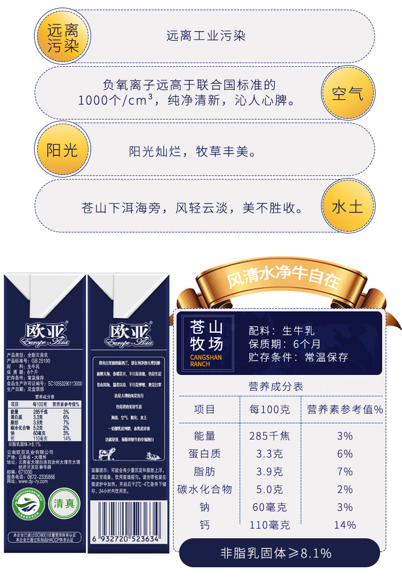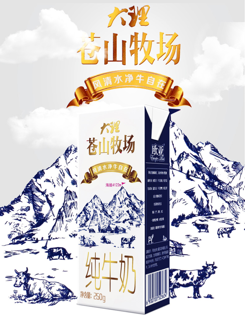 欧亚苍山牧场纯牛奶250ml*12盒 无色