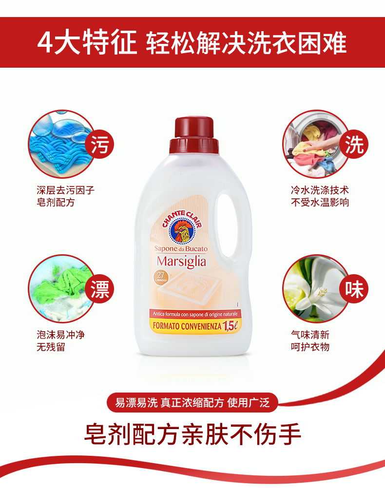 大公鸡管家 马赛洗衣液1500ml(单位:瓶) 白色