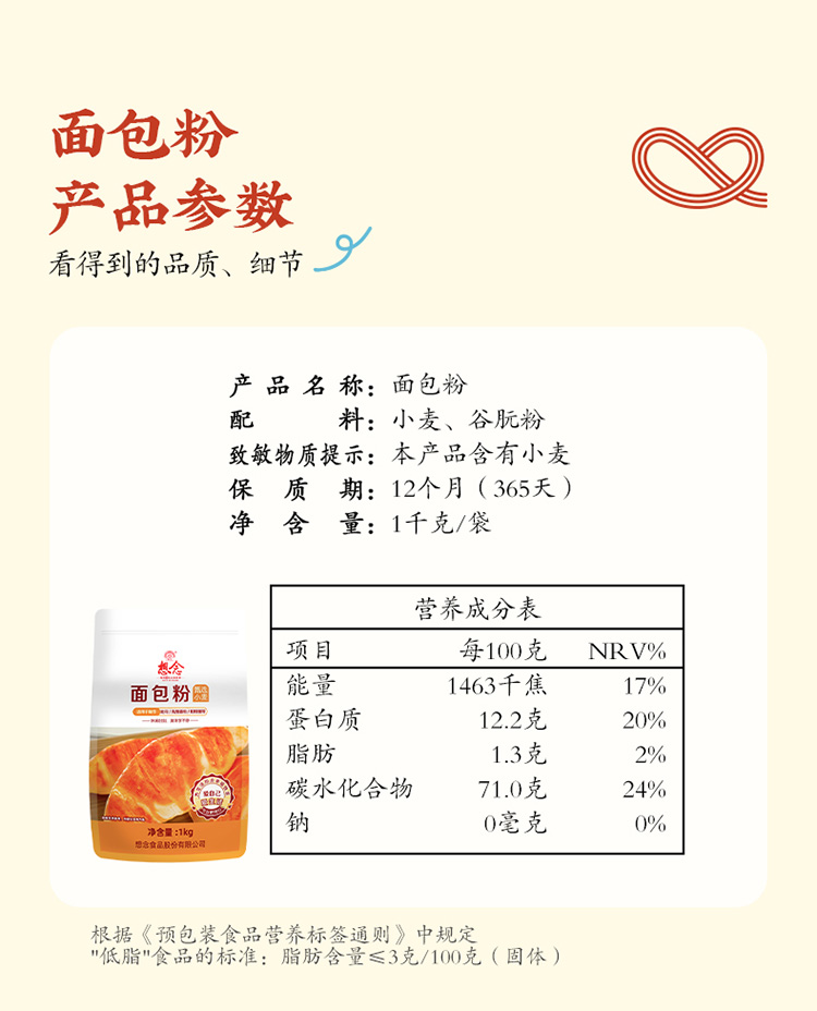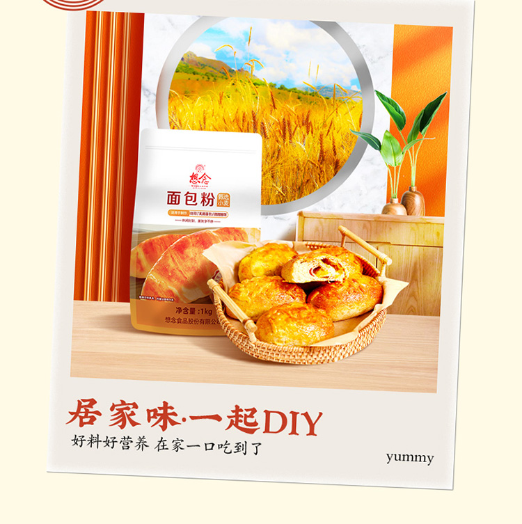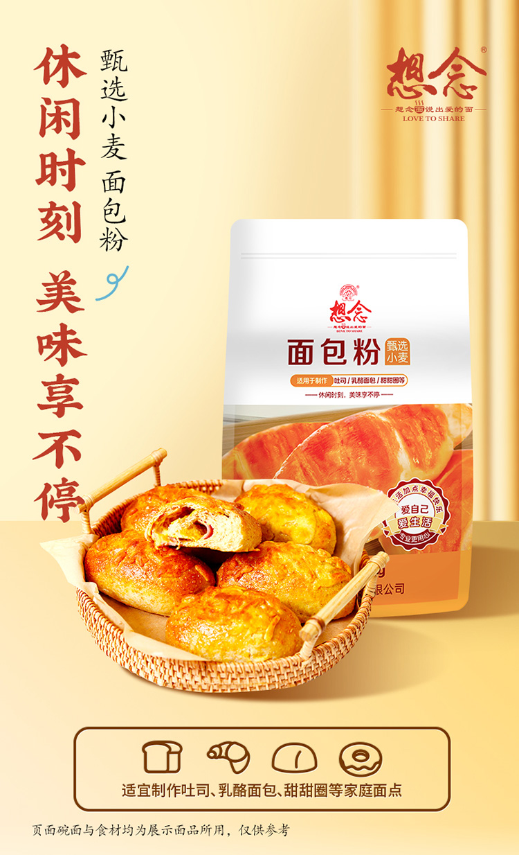 想念 甄选面包粉 1kg*2袋 灰橙色