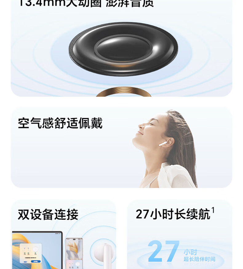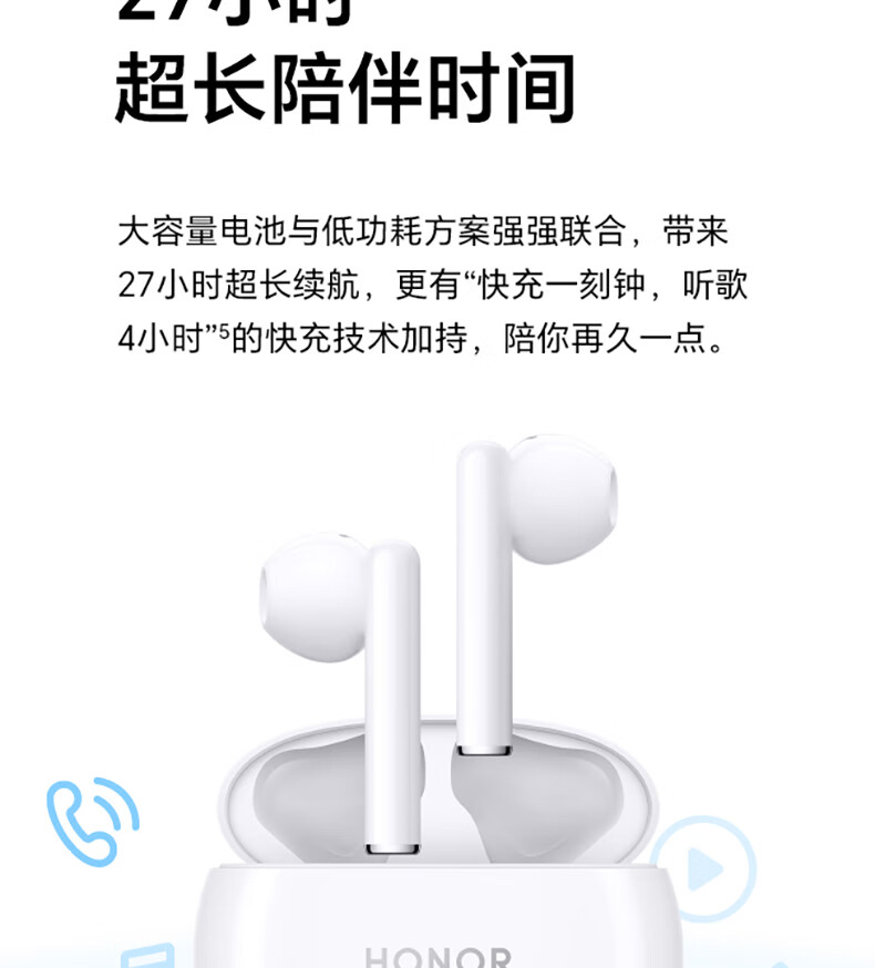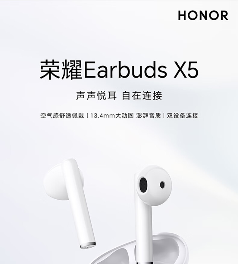荣耀(HONOR)荣耀Earbuds X5 真无线蓝牙耳机 半入耳通话降噪 超大动圈澎湃低音 釉白色