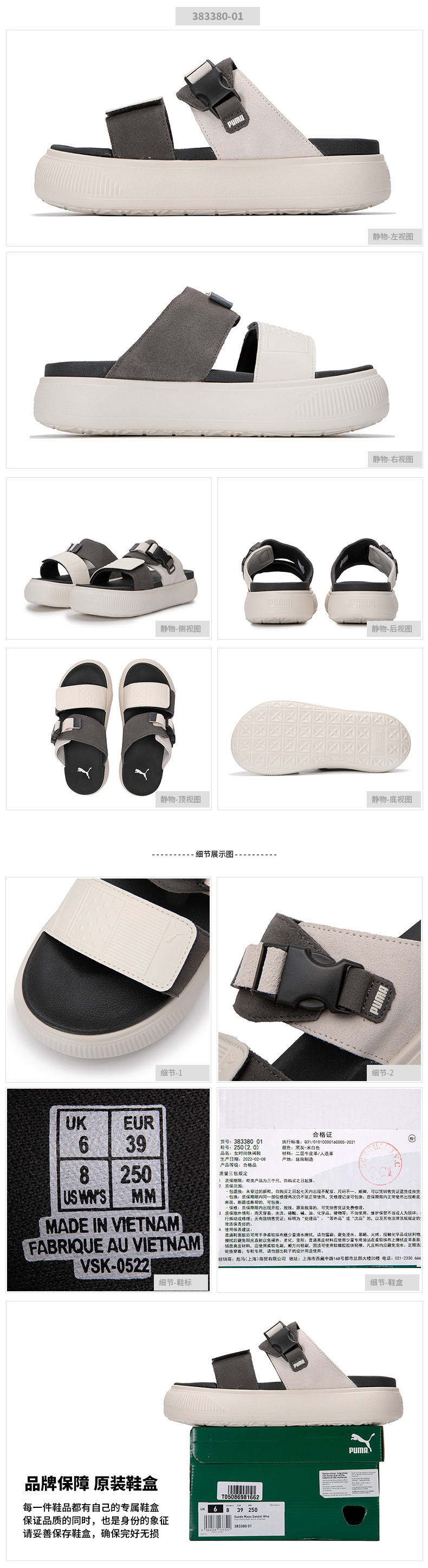 彪马(PUMA)男鞋女鞋 新款运动鞋轻便透气时尚潮流休闲鞋拖鞋 383380 米白色-黑灰-象牙白 37
