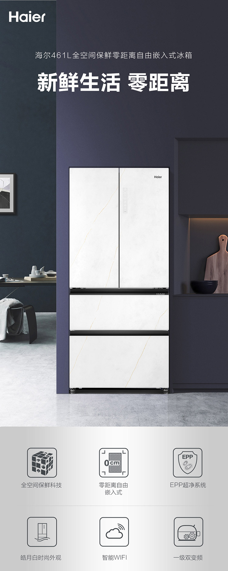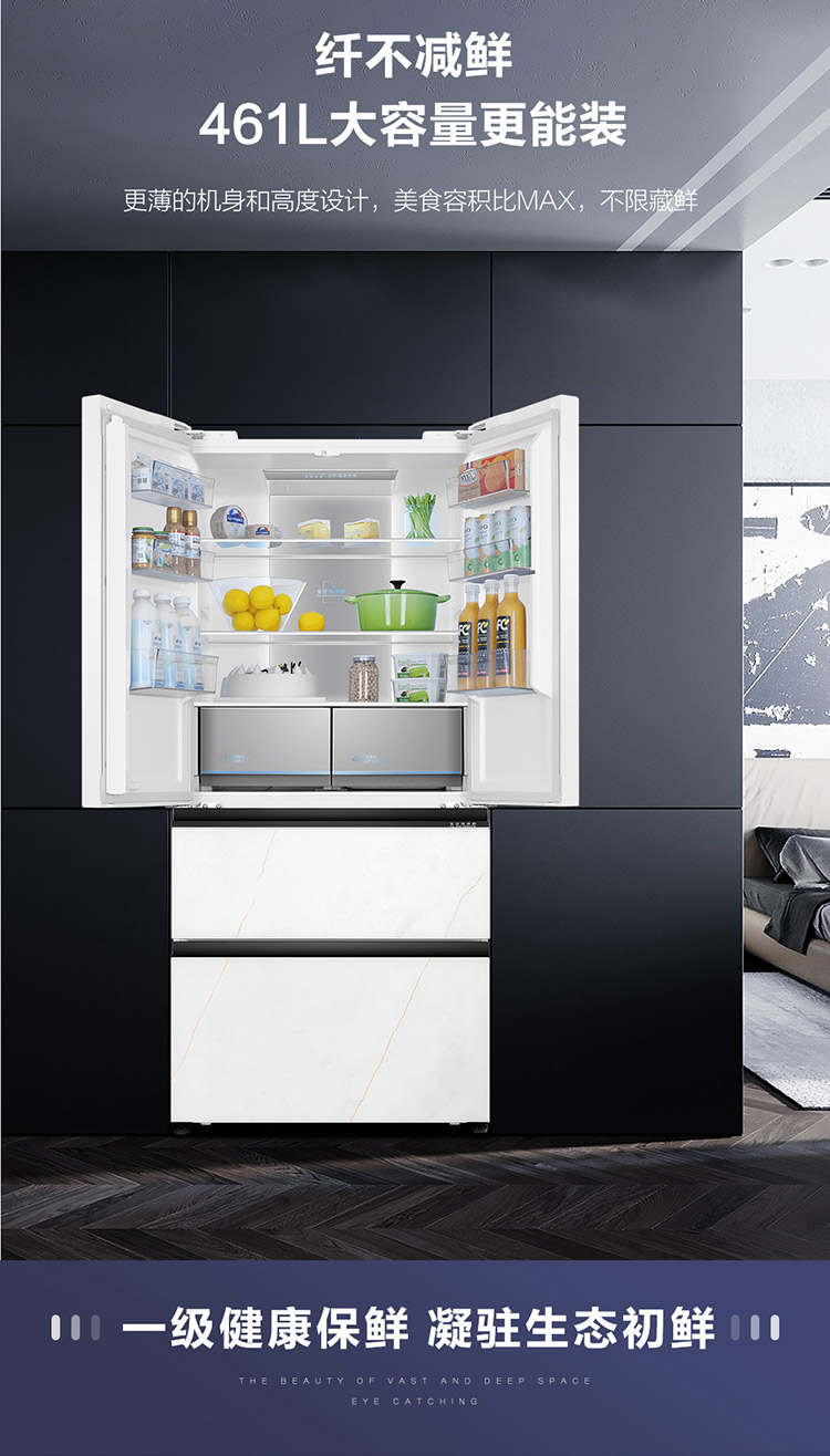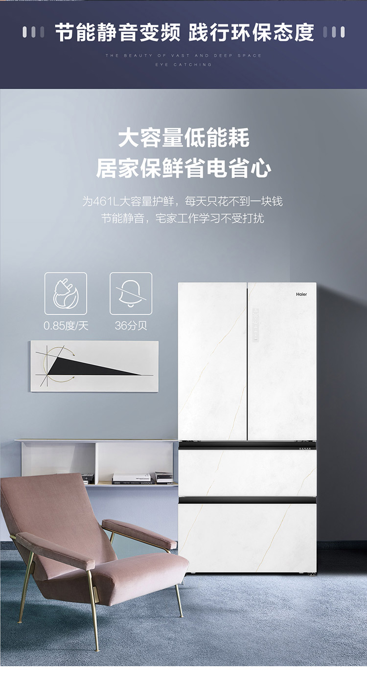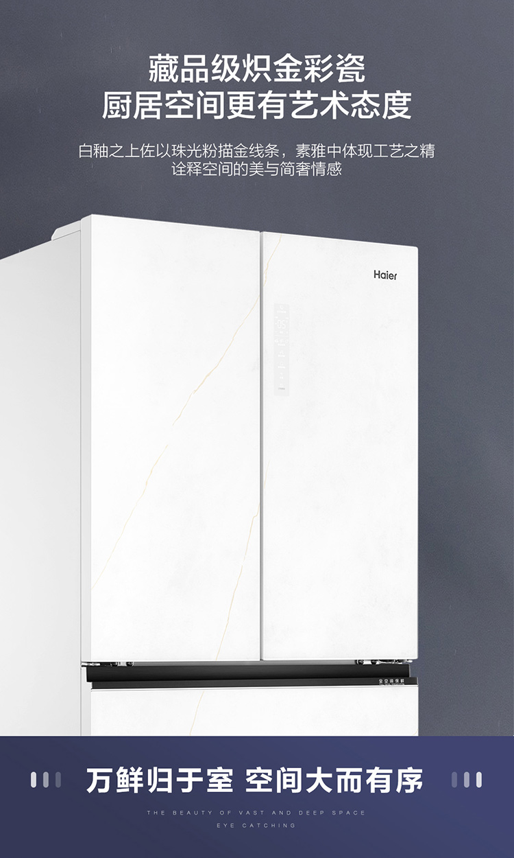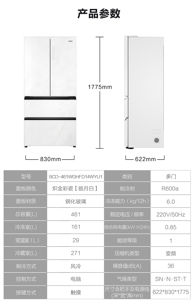 海尔 BCD-461WGHFD14WYU1 多门-四门461升钢化玻璃面板冰箱 白色(单位:台) 皓玉白