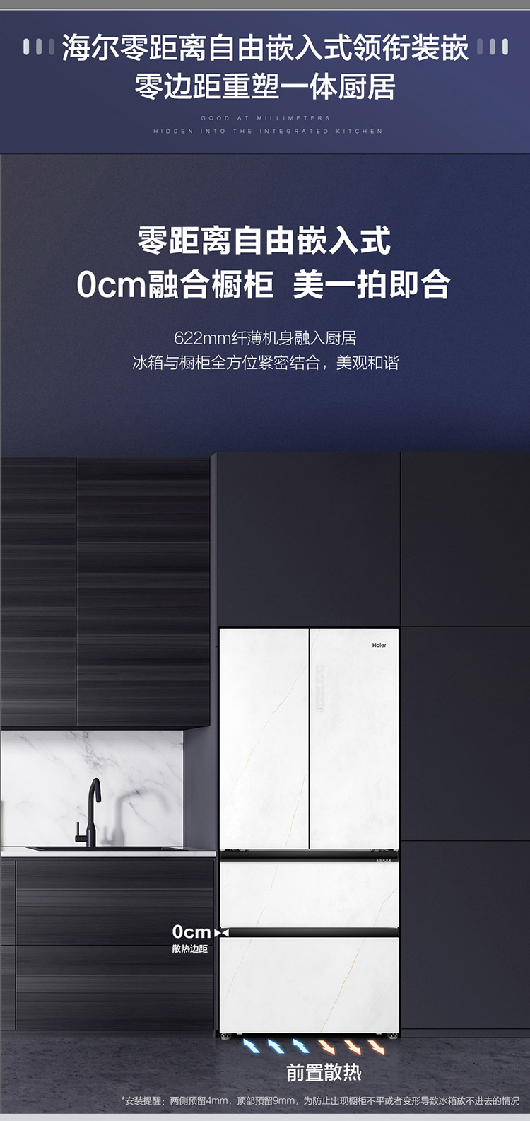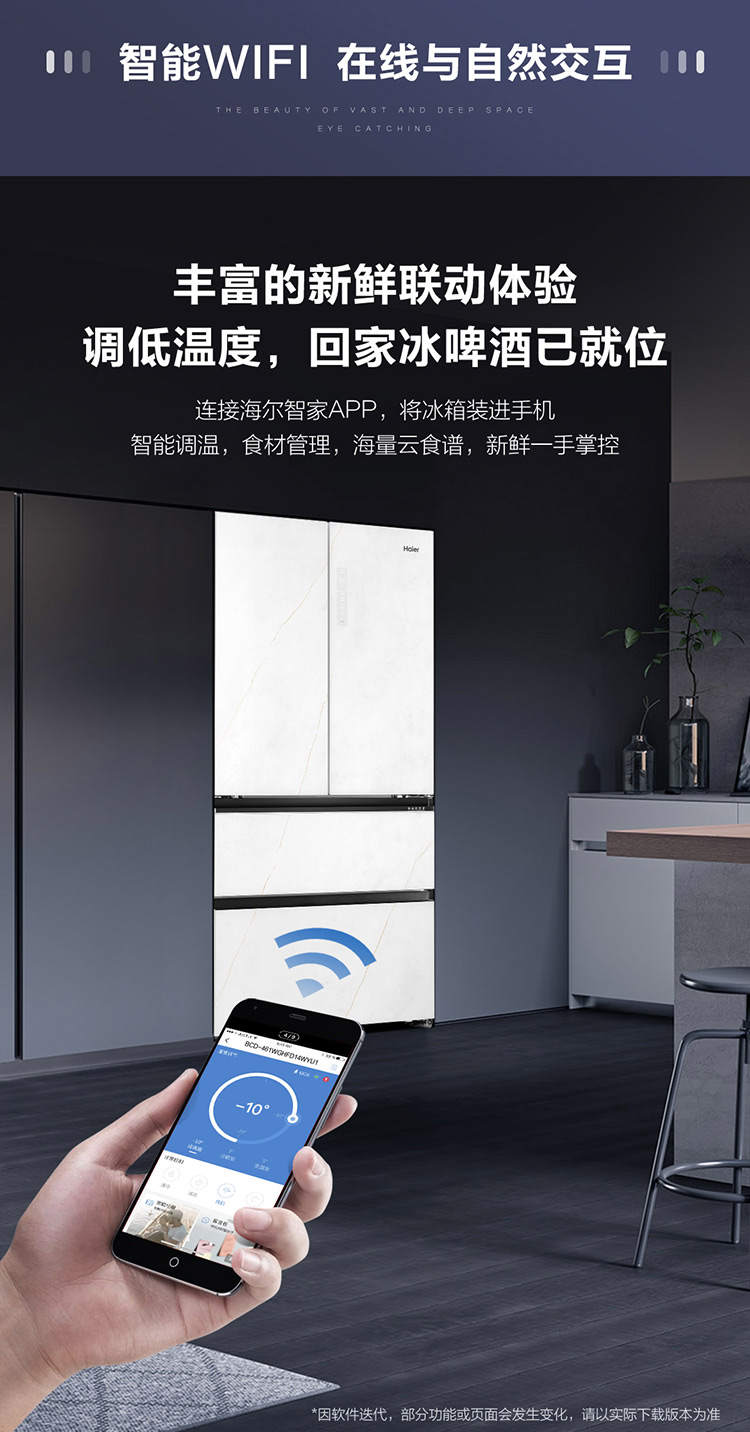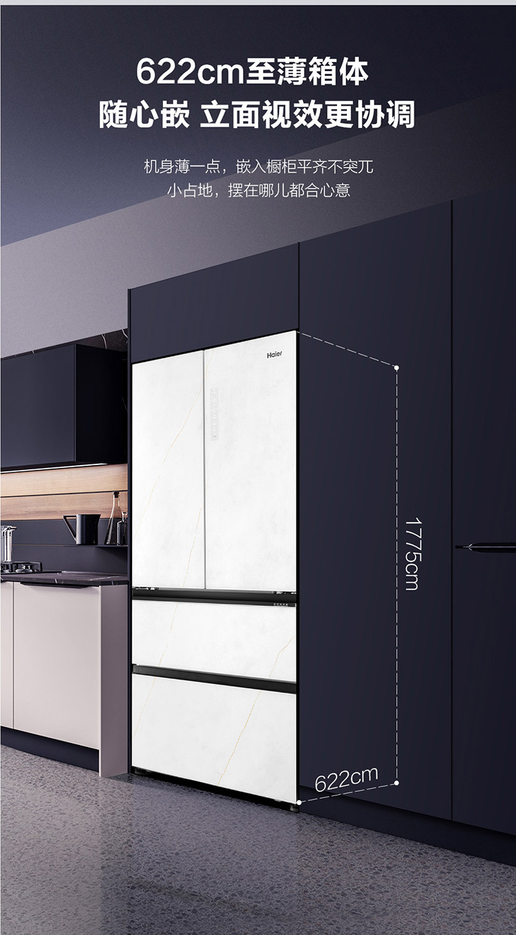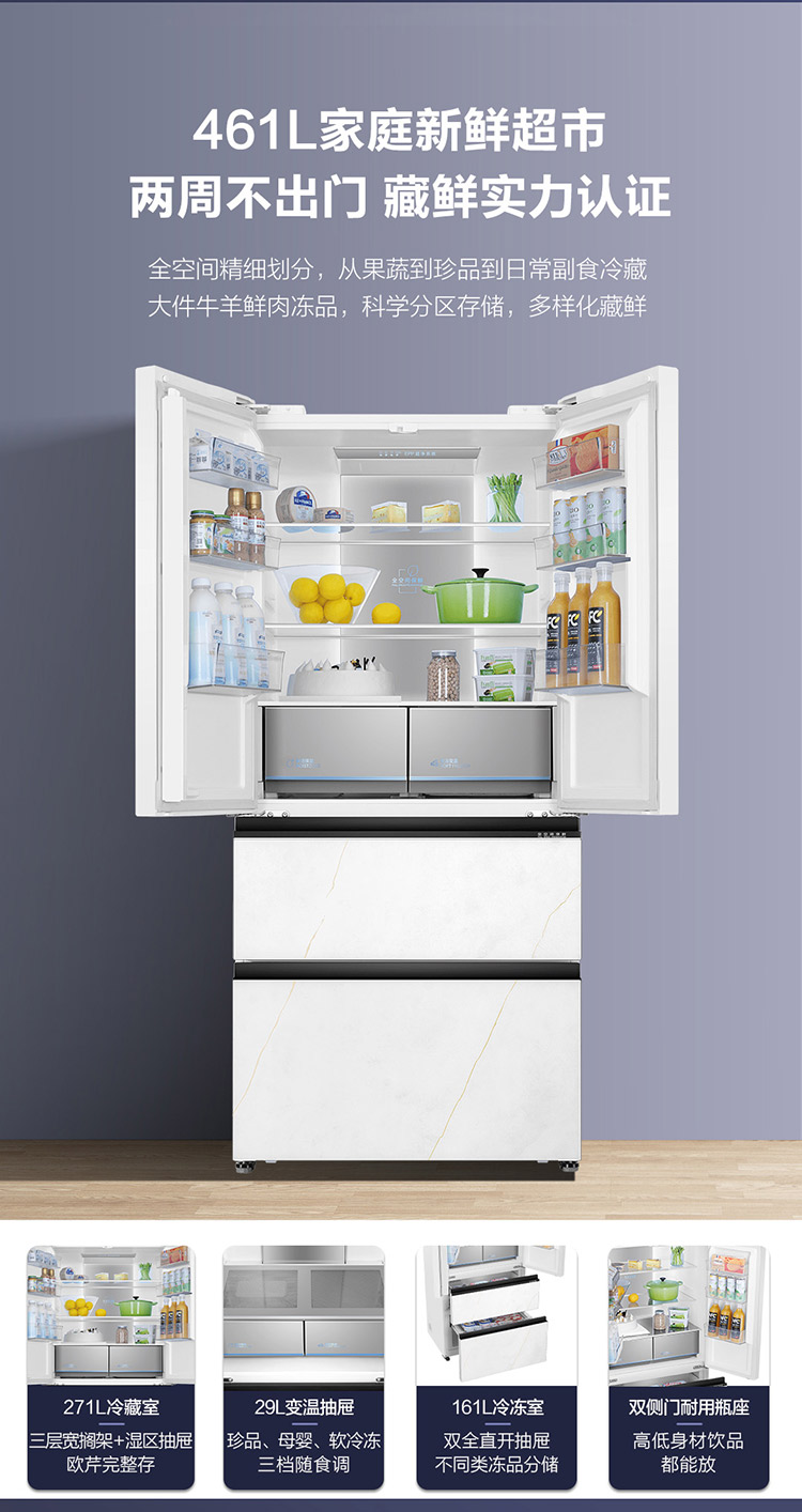 海尔 BCD-461WGHFD14WYU1 多门-四门461升钢化玻璃面板冰箱 白色(单位:台) 皓玉白