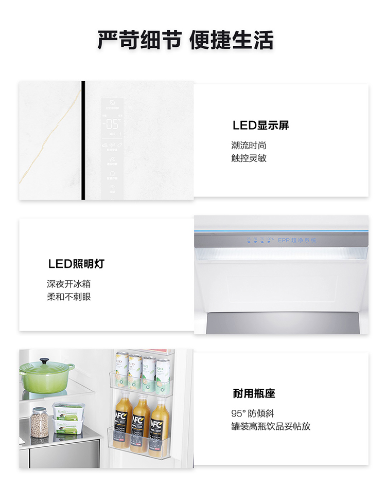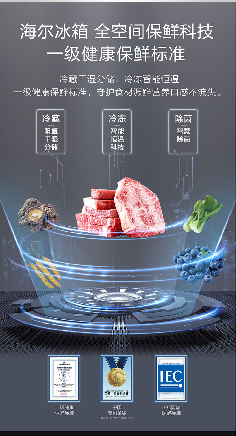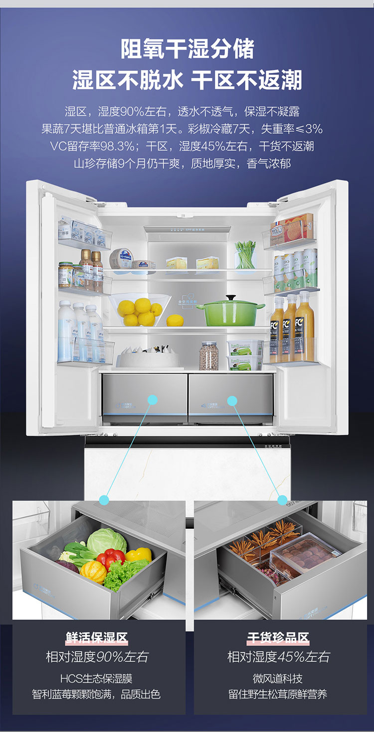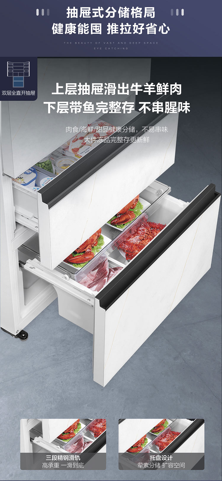 海尔 BCD-461WGHFD14WYU1 多门-四门461升钢化玻璃面板冰箱 白色(单位:台) 皓玉白