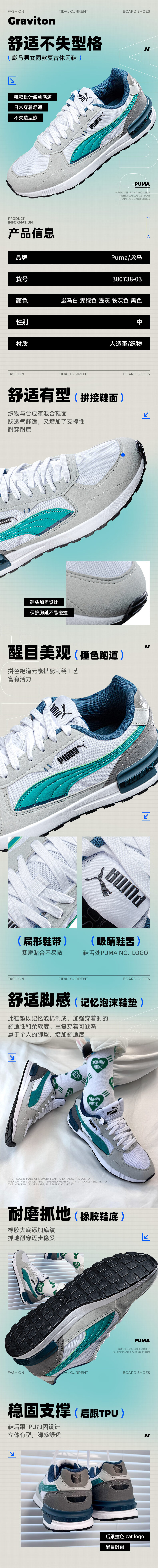 彪马(PUMA)男鞋女鞋 新款运动鞋健身透气跑鞋情侣鞋休闲鞋缓震跑步鞋 380738-03 白-湖绿色-浅灰-铁灰色-黑色 45