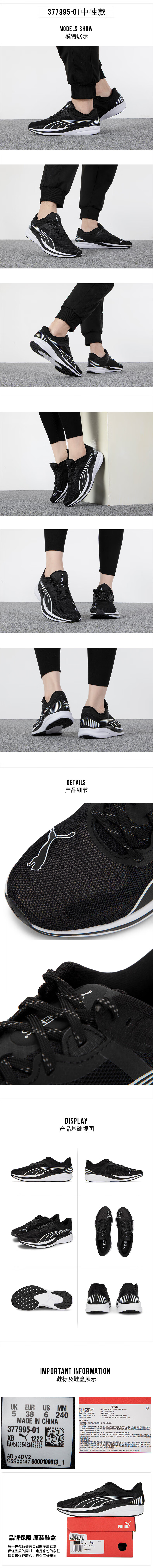 彪马(Puma)男鞋女鞋 新款运动鞋缓震舒适透气轻质休闲耐磨跑步鞋 377995-01 黑色-彪马白 37