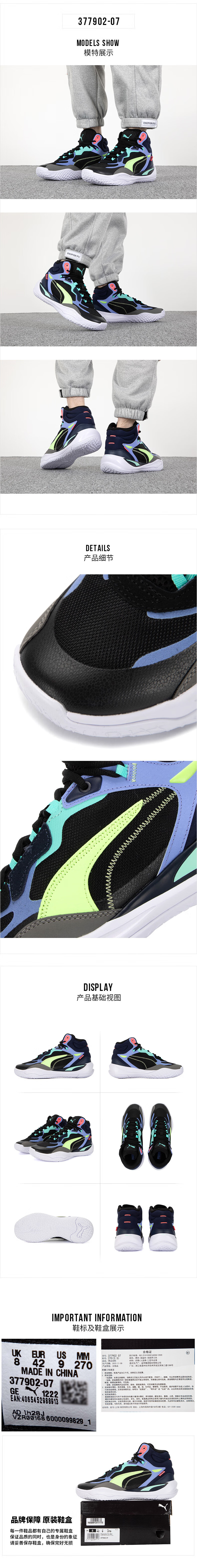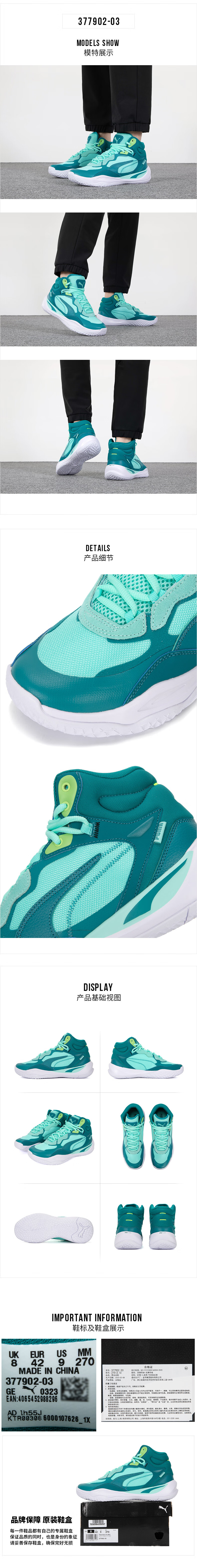 彪马(PUMA)男鞋 新款运动鞋缓震耐磨轻便跑步训练鞋实战比赛篮球鞋 377902 薄荷绿-深蓝色 42.5