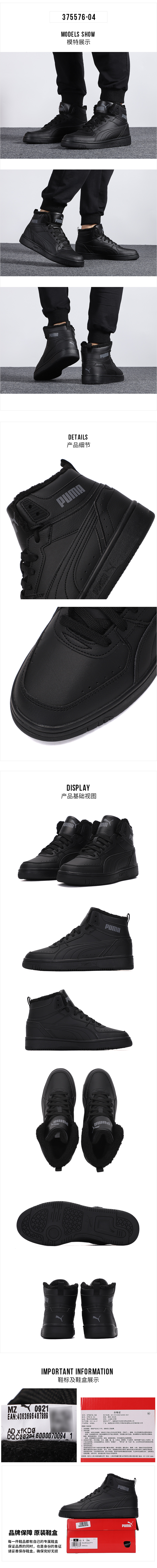 彪马(PUMA)男鞋女鞋 新款运动鞋潮流透气中高帮板鞋加绒棉鞋保暖休闲鞋 375576-04 黑色-石灰色 35.5