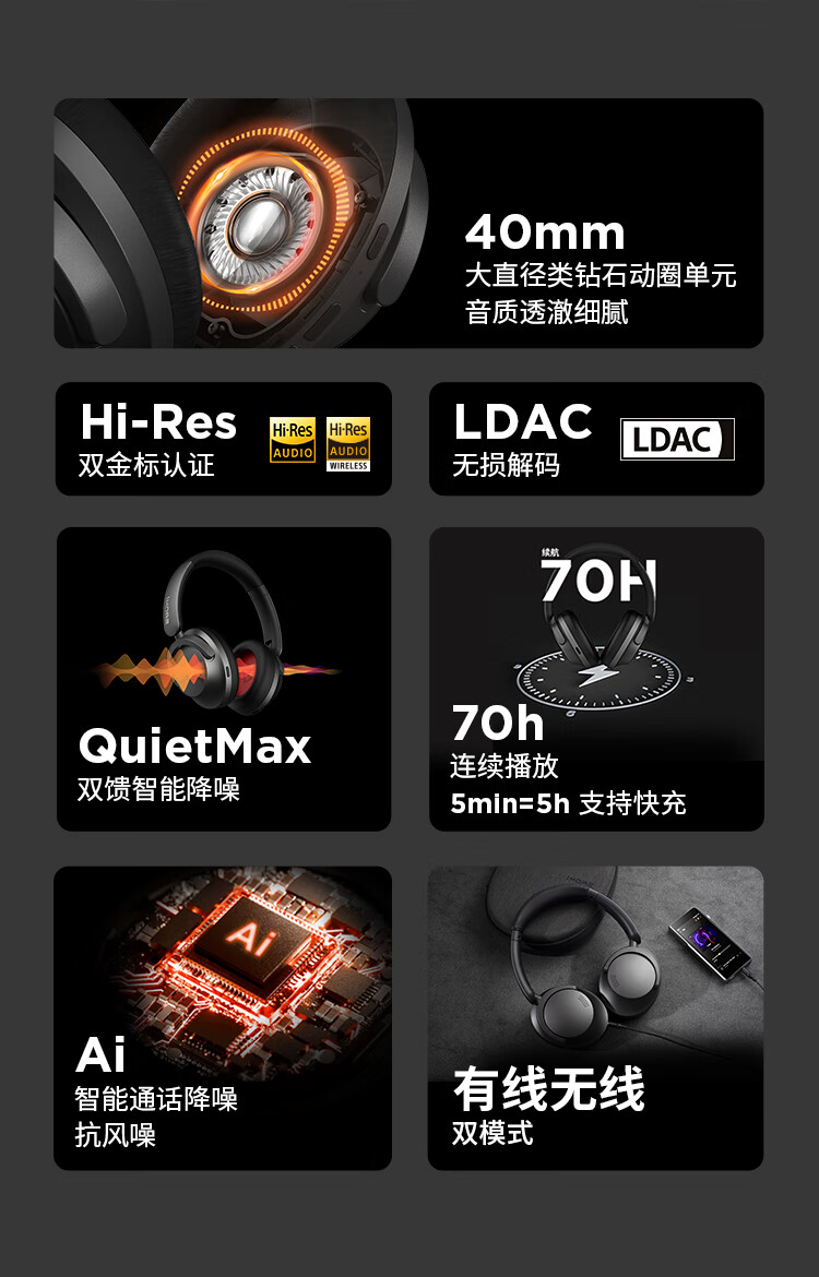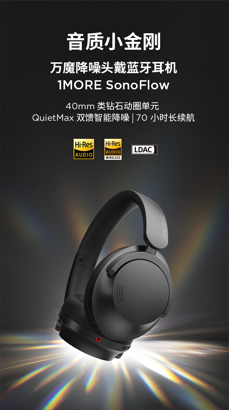 万魔(1MORE)HC905 头戴式蓝牙耳机 智能主动降噪 真无线游戏音乐运动耳机 单位:副 蓝色