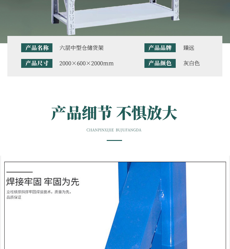 臻远 ZY-ZXHJ-42 中型仓储货架 2000×600×2000 主架 灰白色 六层 银色