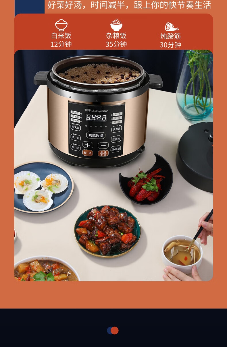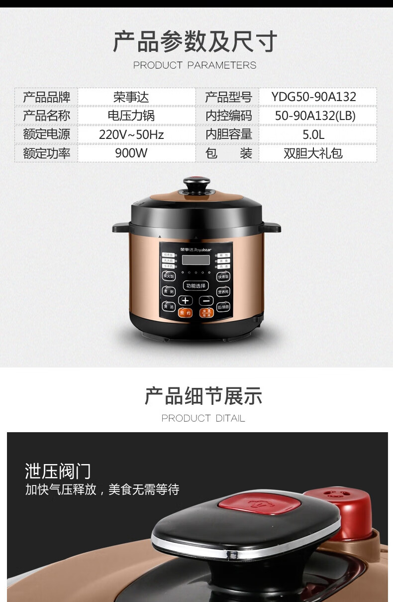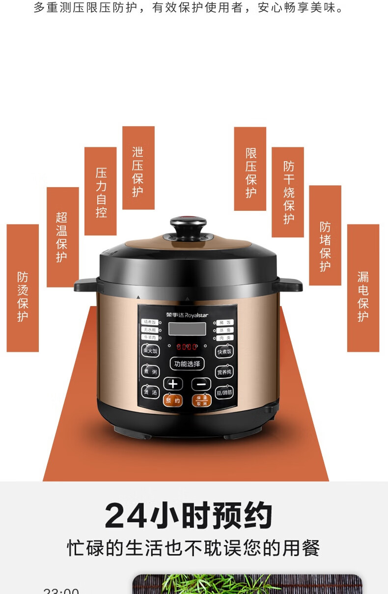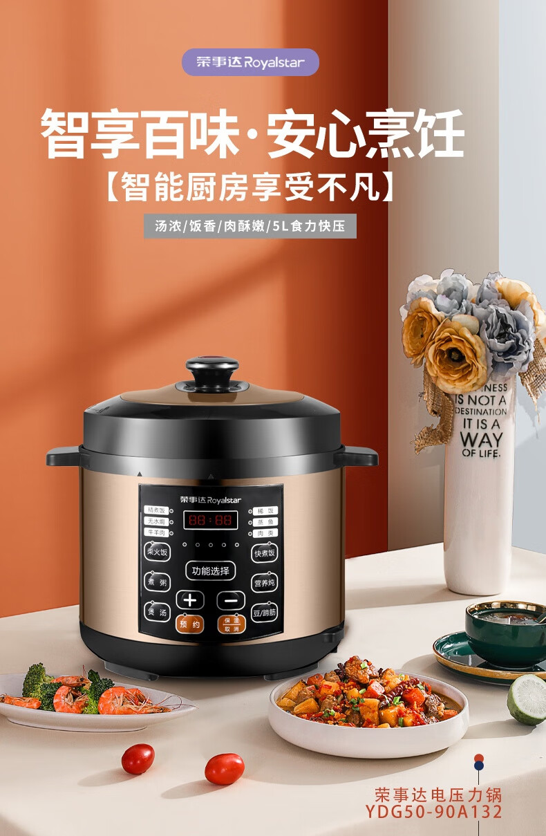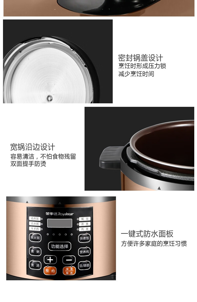 荣事达(Royalstar)智能预约电压力锅5L 触控大面板家用保温煮饭煲汤易清洁YDG50-90A 香槟金