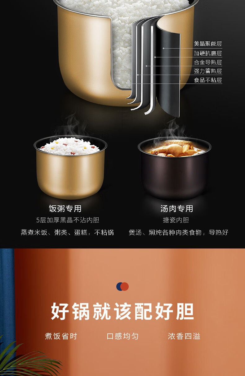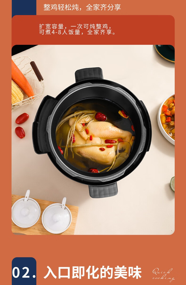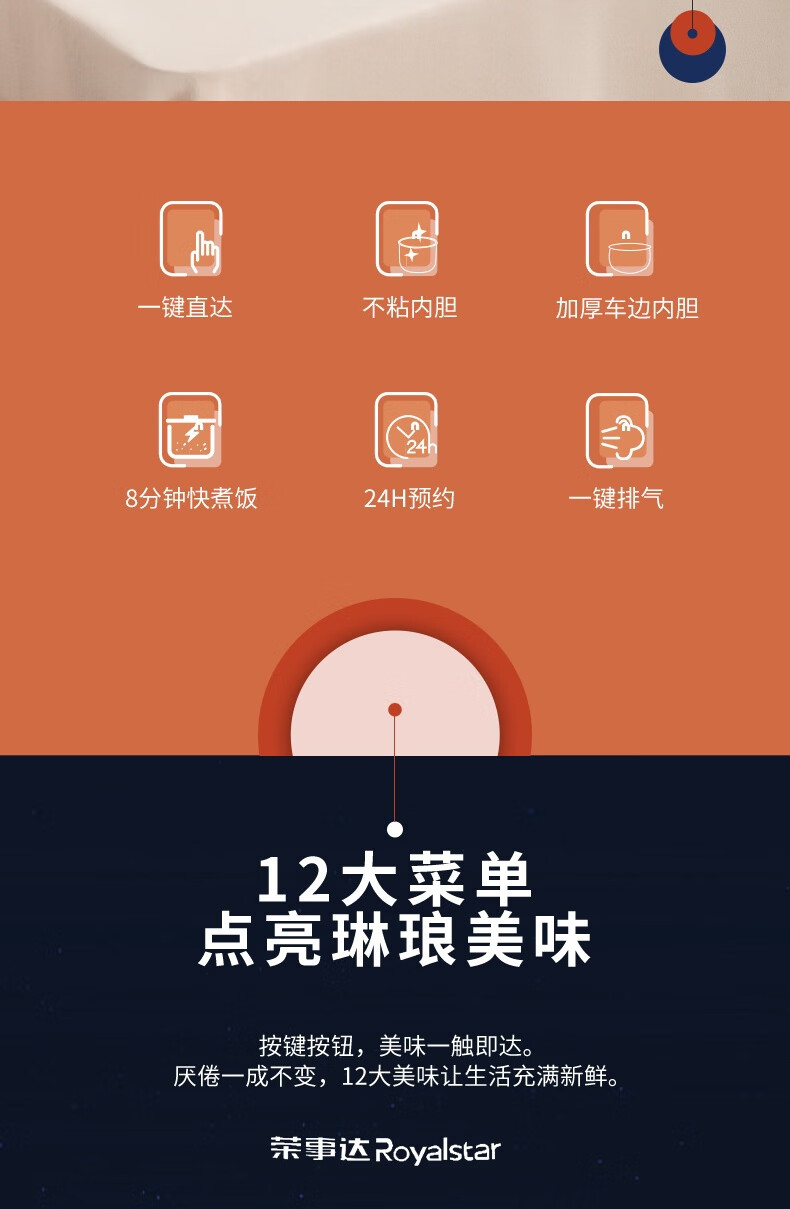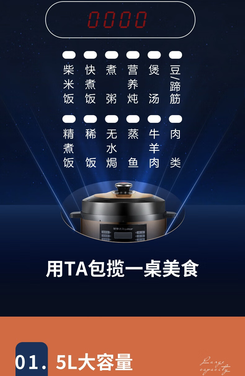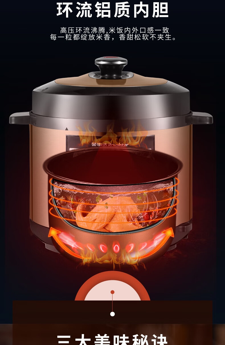 荣事达(Royalstar)智能预约电压力锅5L 触控大面板家用保温煮饭煲汤易清洁YDG50-90A 香槟金