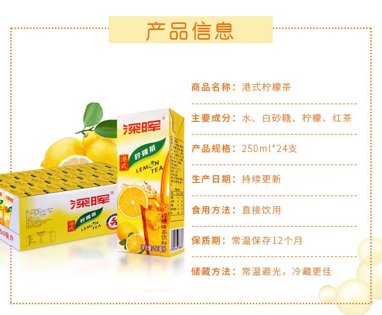 深晖港式柠檬茶饮料250ml*24盒*1箱 柠檬茶饮料250ml*24盒*1箱