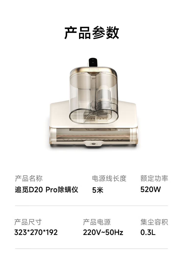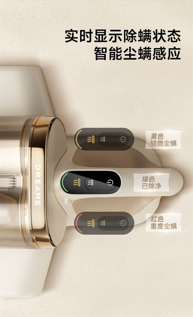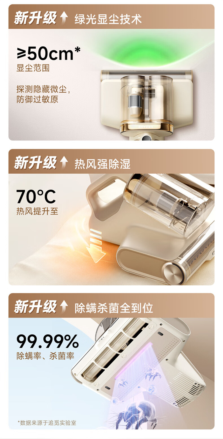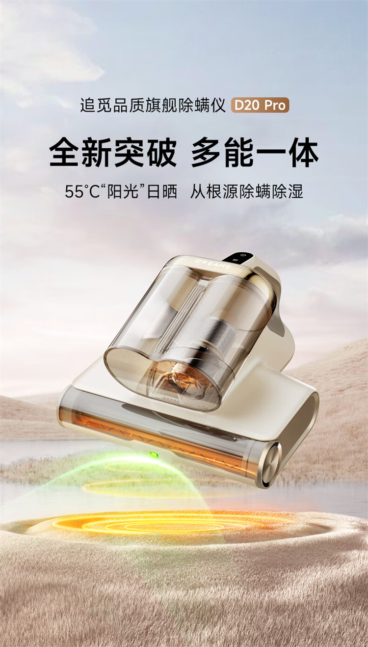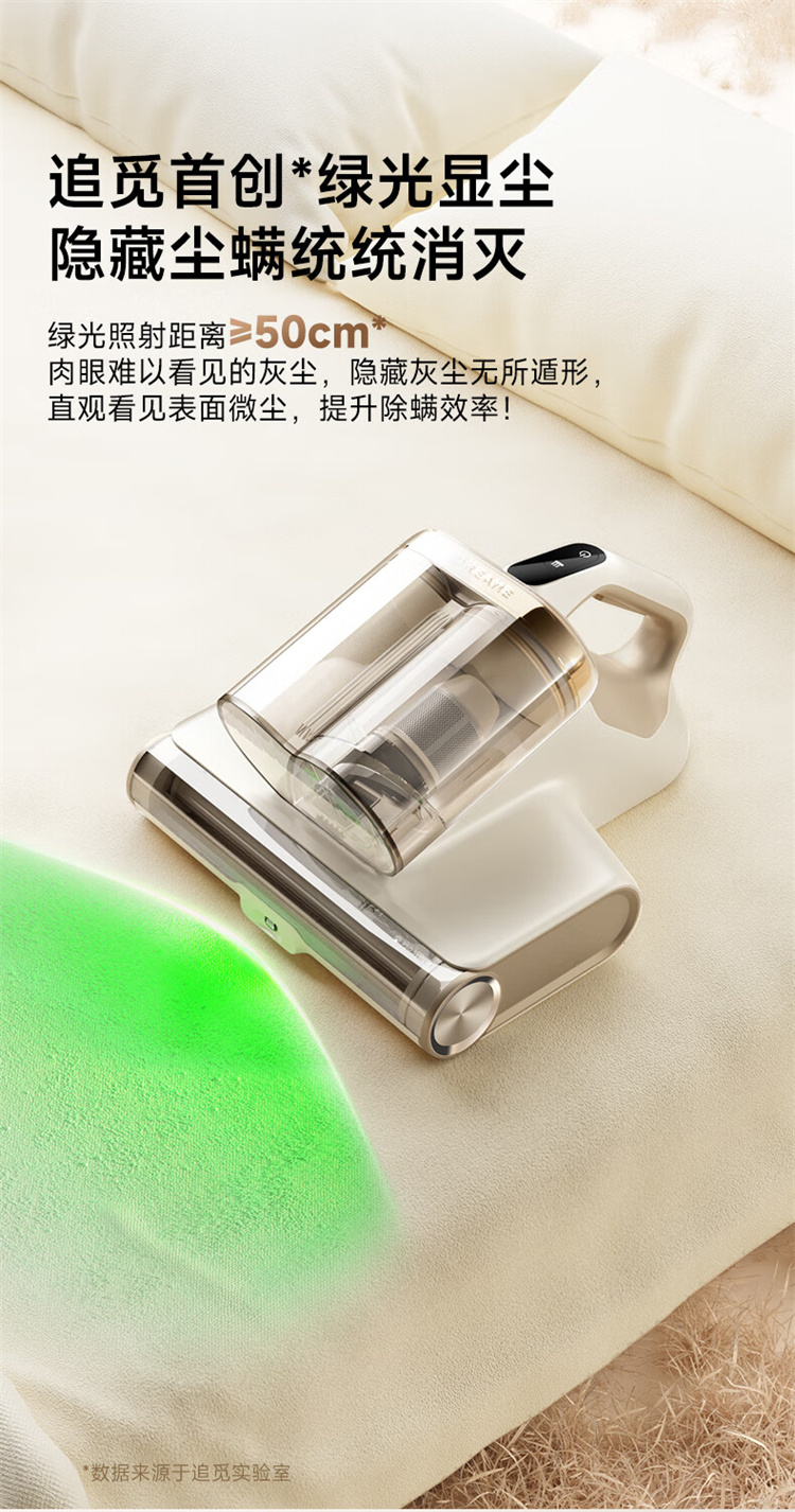 追觅除螨仪D20 Pro 强劲捶打加热除螨绿光显尘双杯家用大吸力紫外线杀菌除湿除单位:个 香槟色