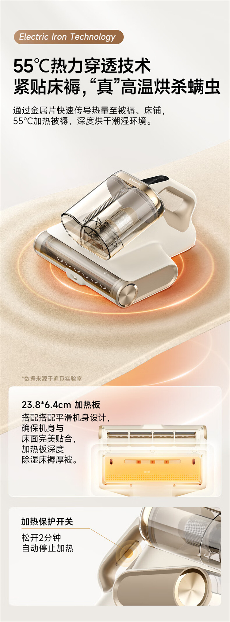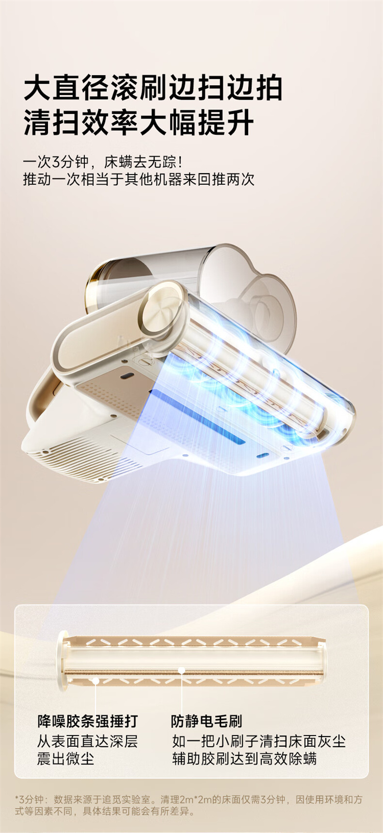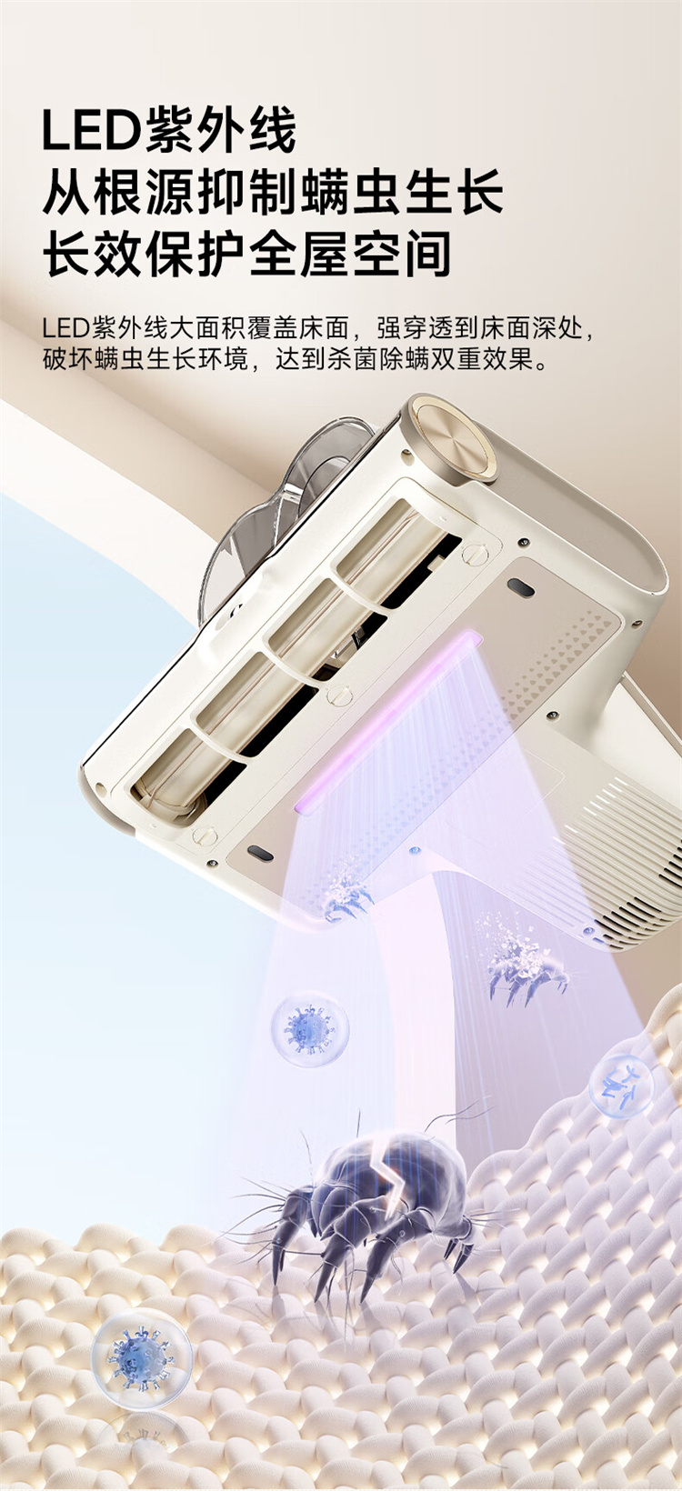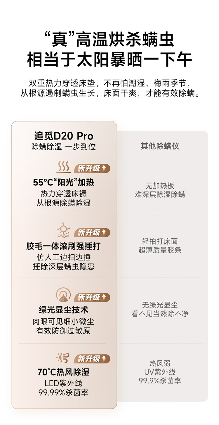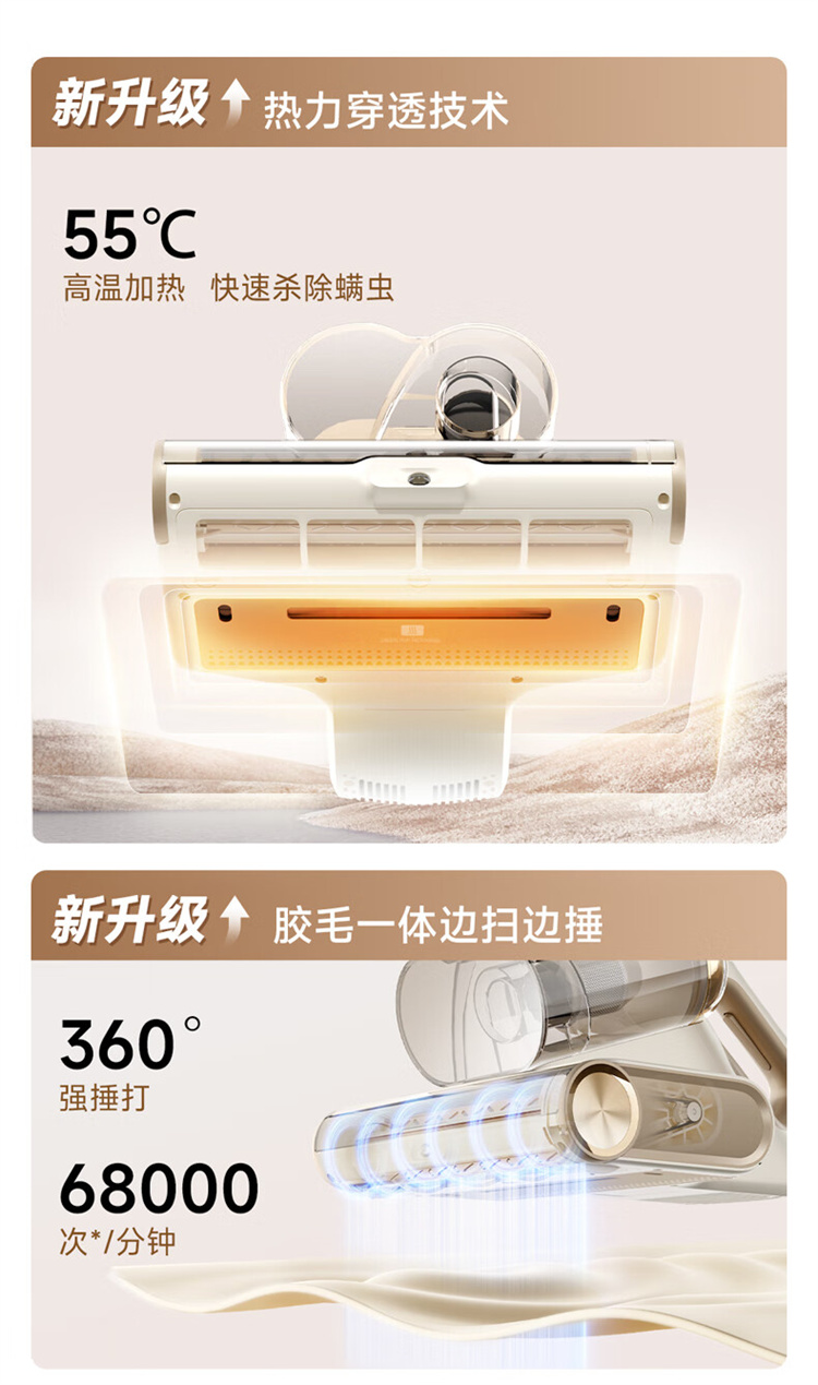 追觅除螨仪D20 Pro 强劲捶打加热除螨绿光显尘双杯家用大吸力紫外线杀菌除湿除单位:个 香槟色