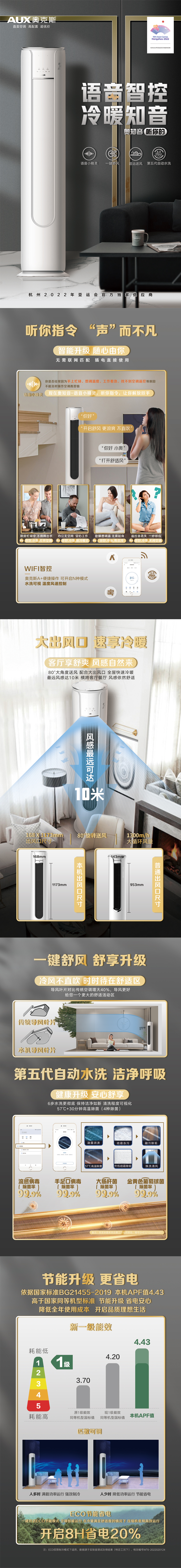 奥克斯(AUX)3匹柜机奥知音 新一级能效 变频冷暖KFR-72LW/BpR3AQD600(B1)台 白色