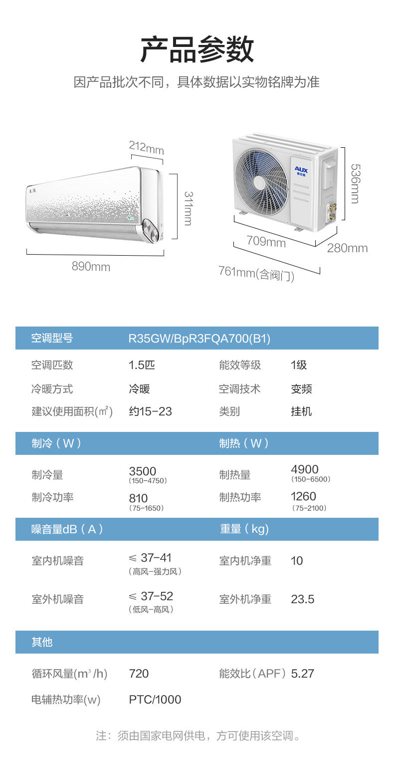 奥克斯(AUX) 空调 冷暖1.5匹挂机畅享风ⅡR35GW/BpR3FQA700(B1)单位:台 白色