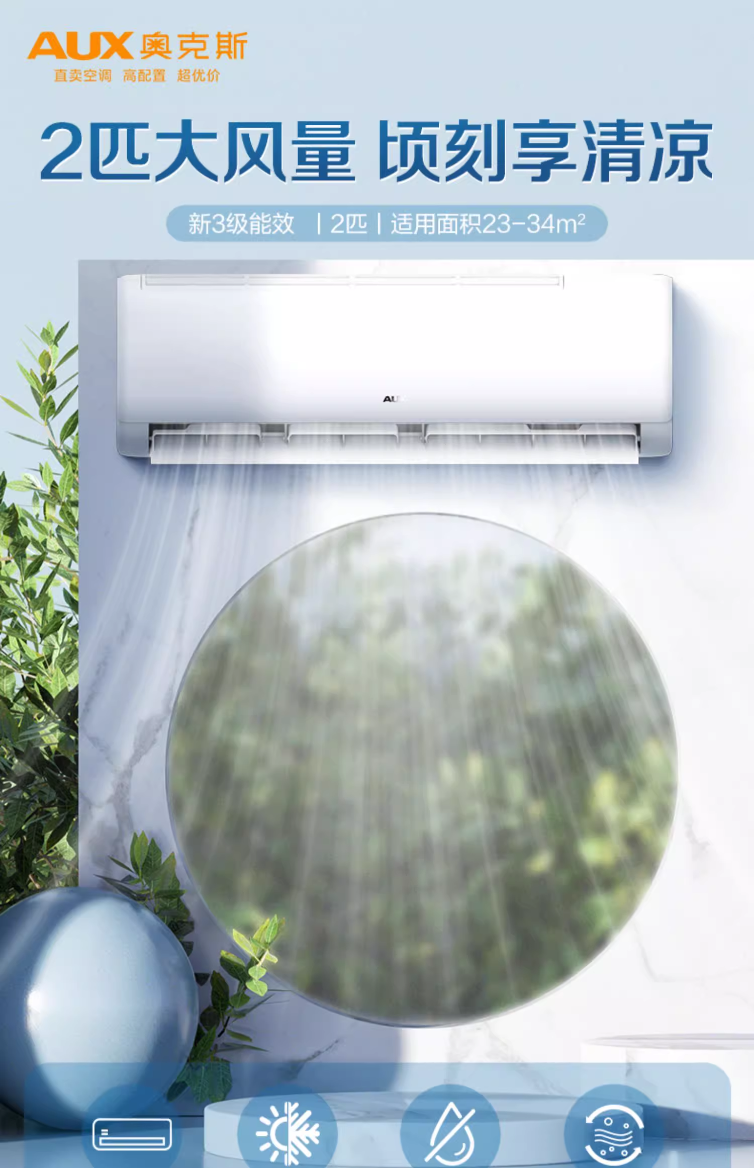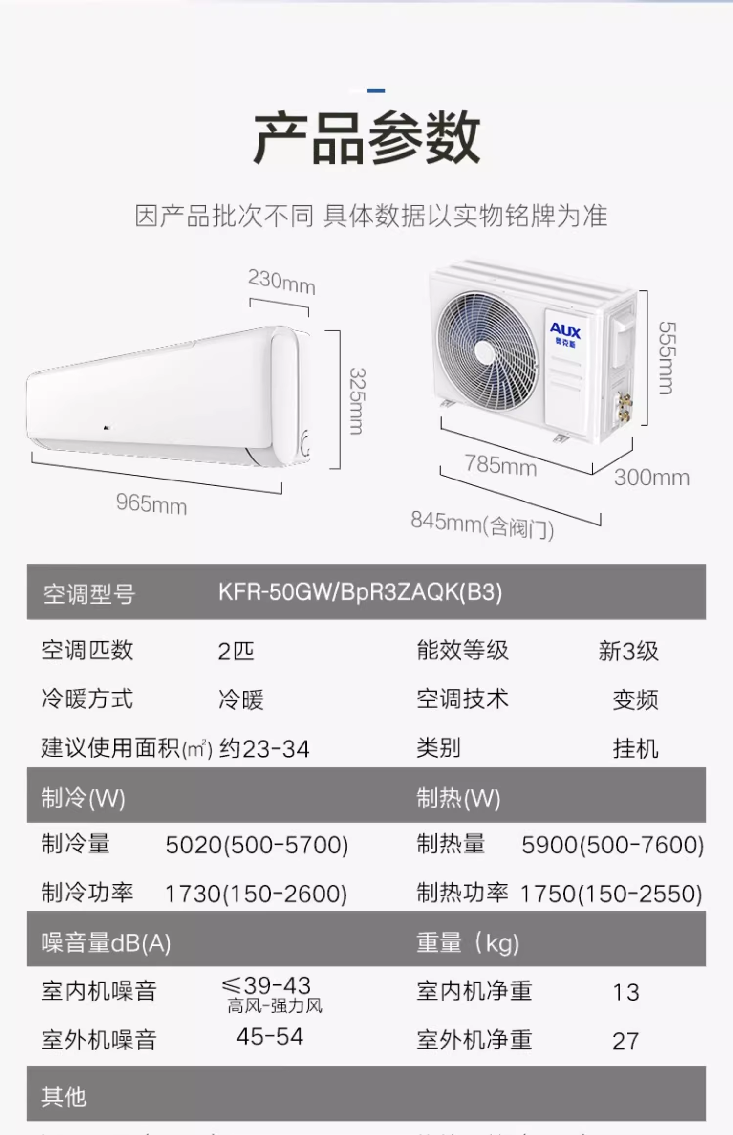 奥克斯 (AUX) 空调挂机 变频冷暖壁挂式空调2匹 R50GW/BpR3ZAQK(B3)单位:台 白色