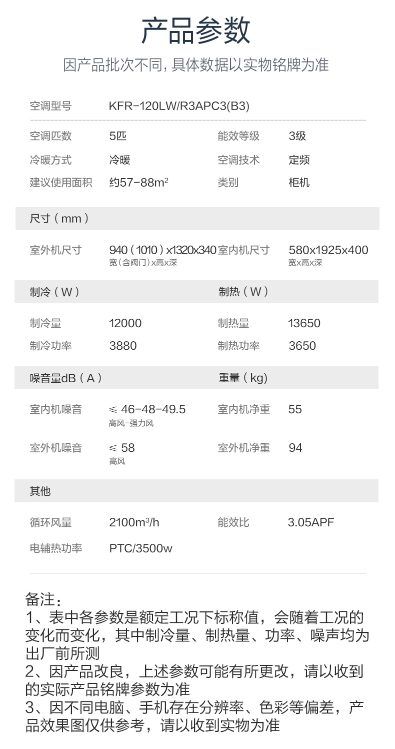 奥克斯(AUX)空调立式柜机5匹 380V电压 KFR-120LW/R3APC3(B3) 单位:台 白色