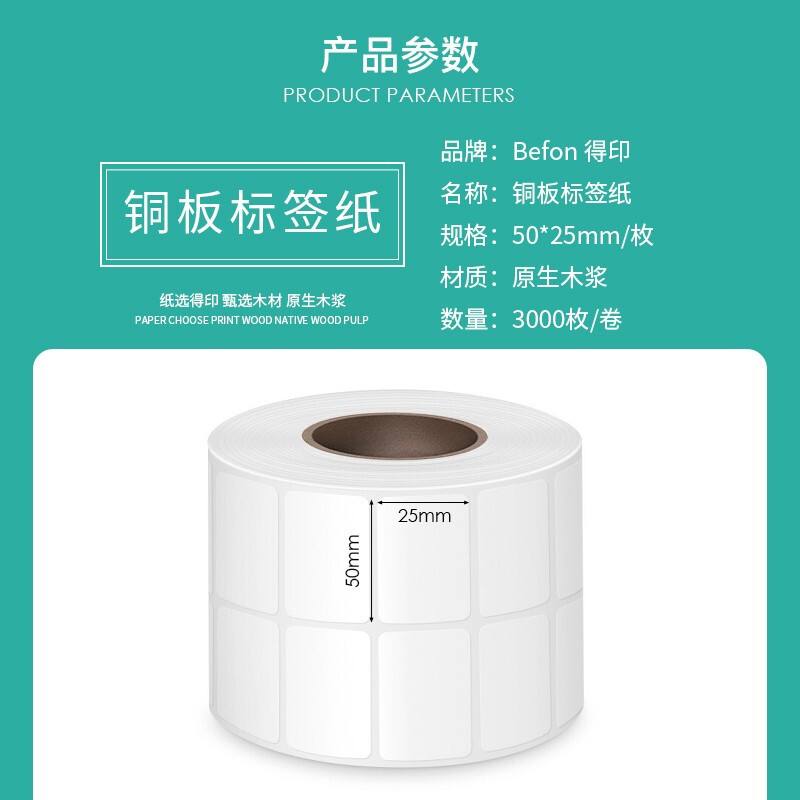 得印(befon) 铜版 50mm*25mm*3000枚 不干胶标签纸 本白色(单位:卷)