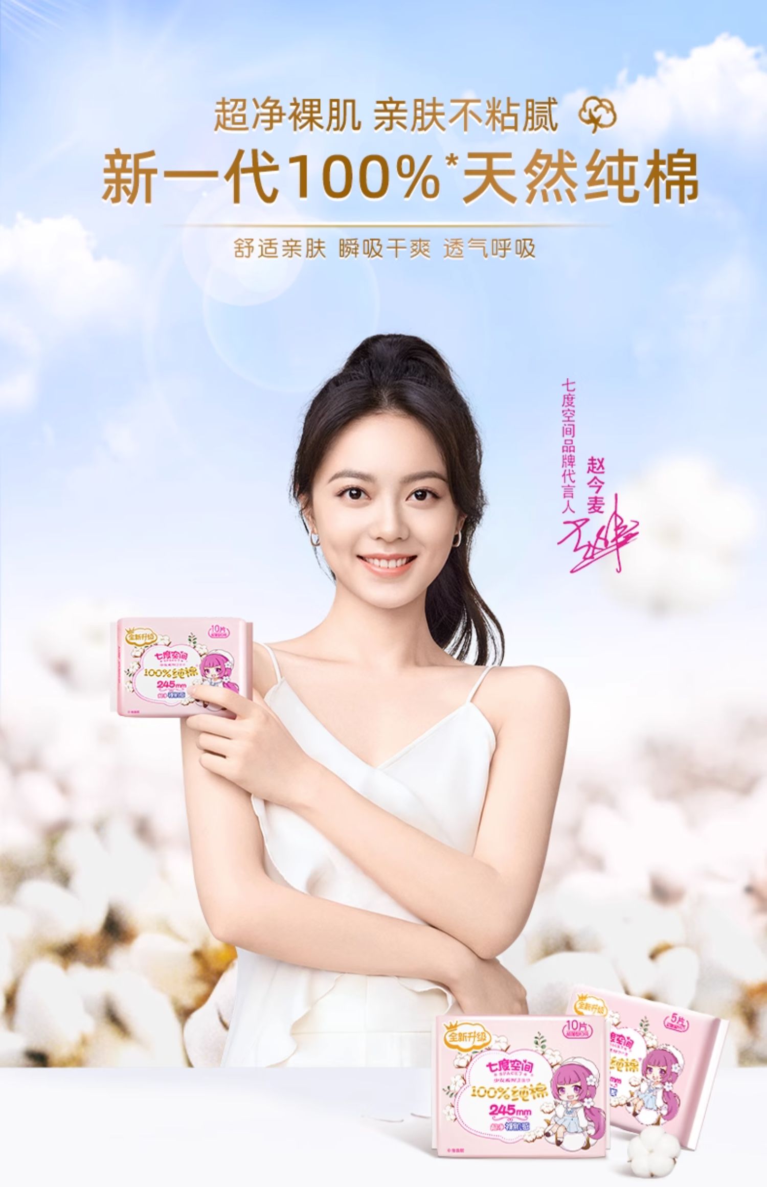 4QSC6105七度空间少女纯棉柔超薄日用4包共20片装 白色