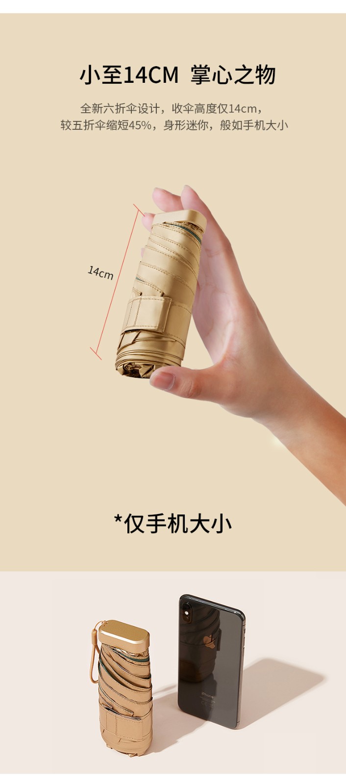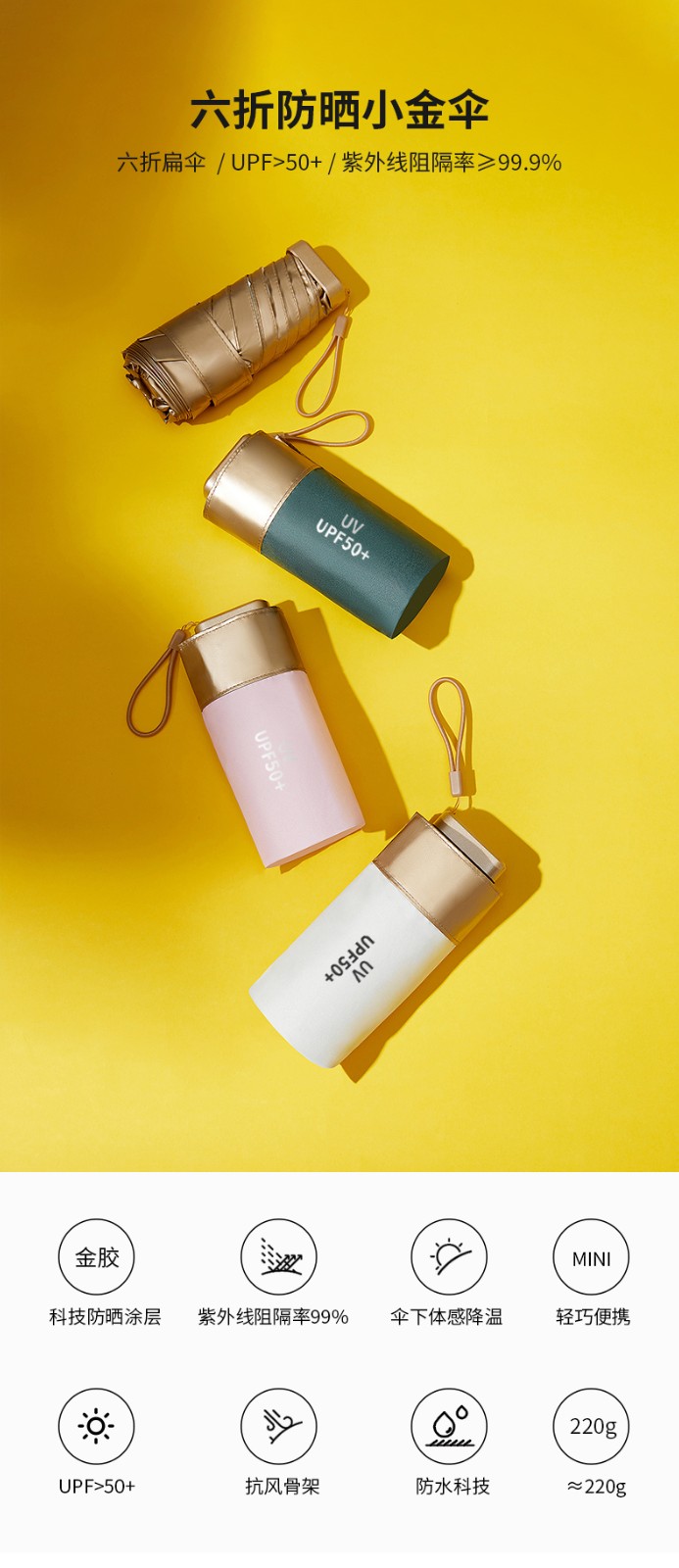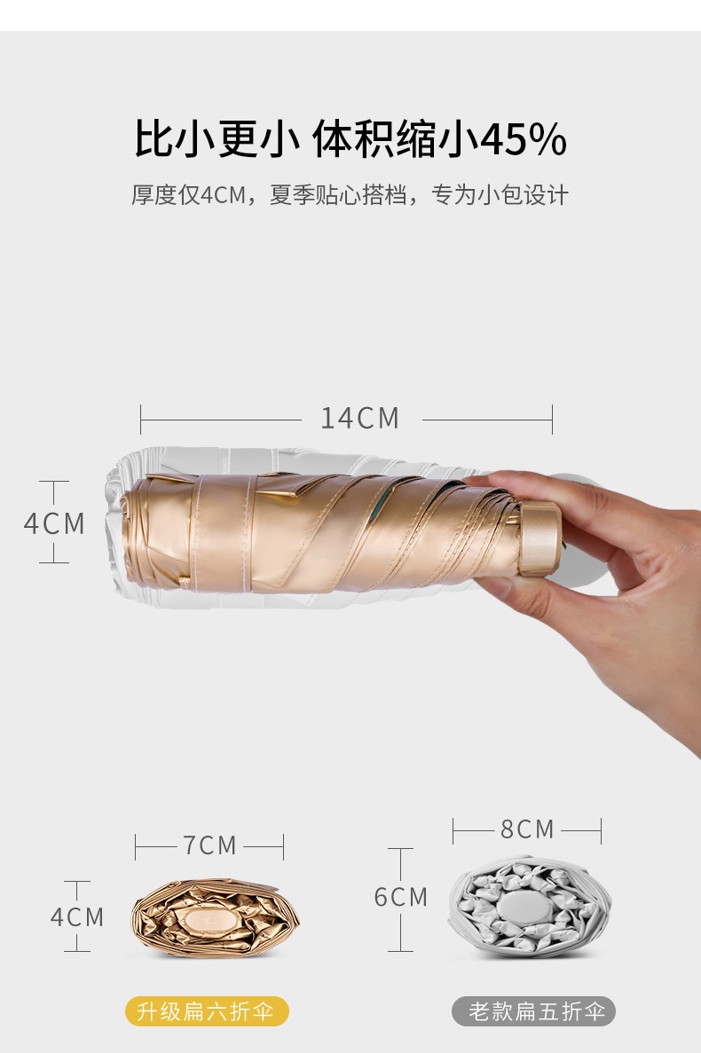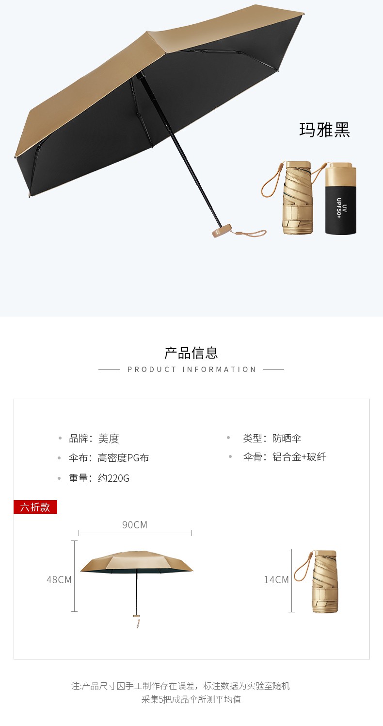 美度太阳伞小金拇指伞迷你六折M6109 50cm*6k/把 六折小金伞-白色
