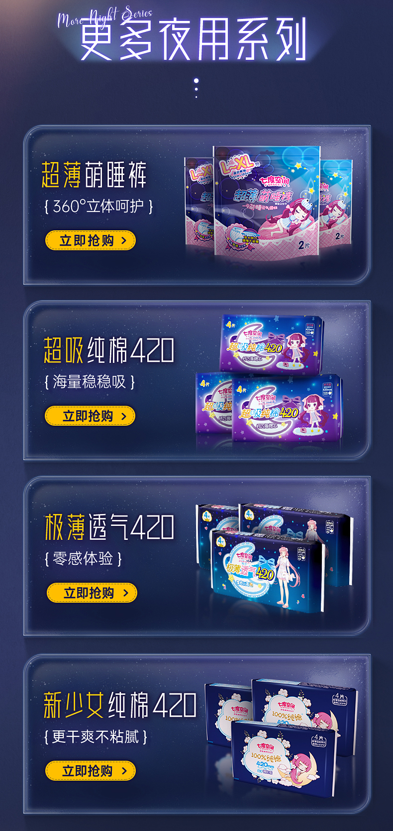 七度空间 8QSC6908(包装)少女超薄超长夜用420mm*8片*8包装 白色
