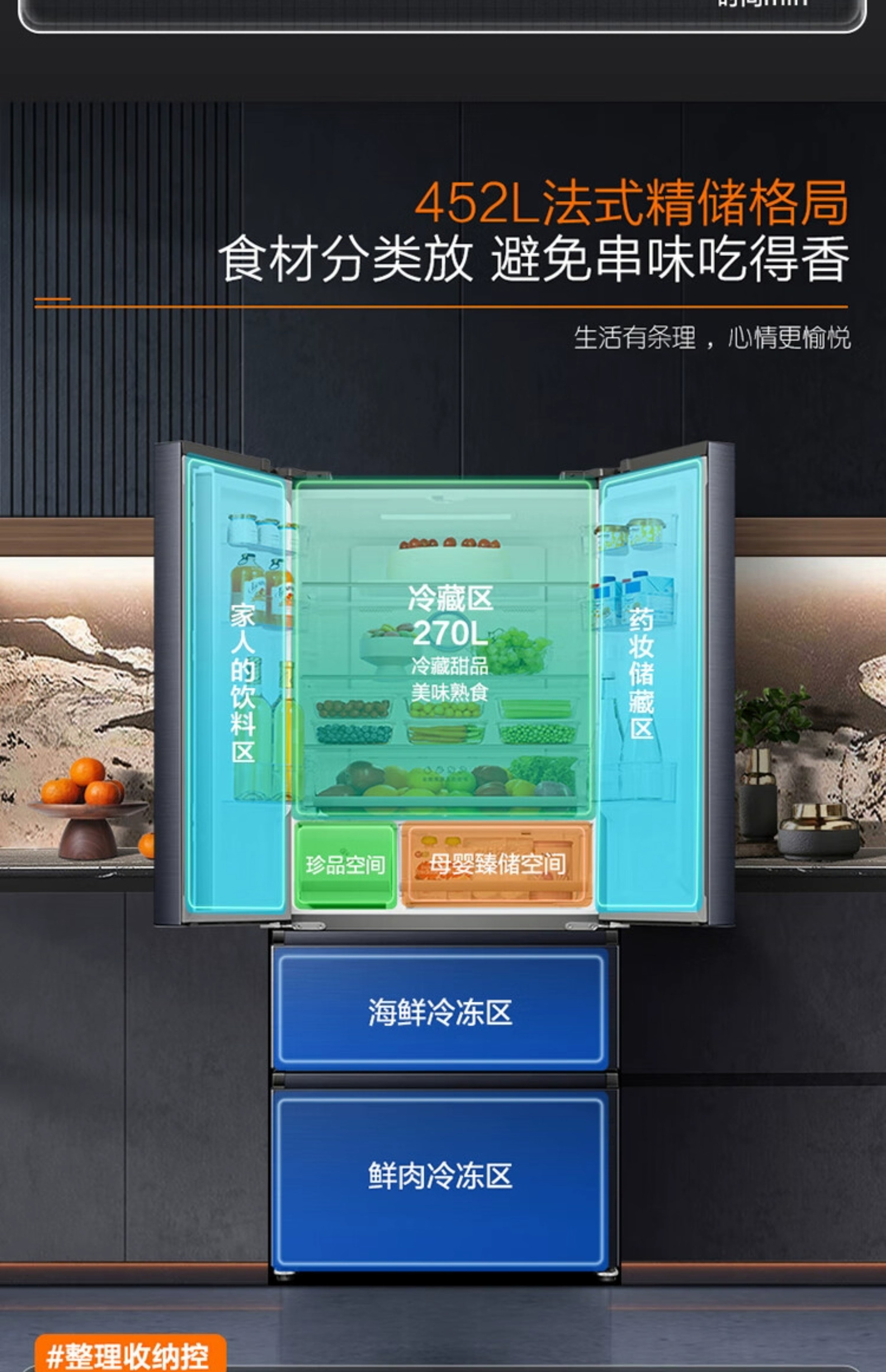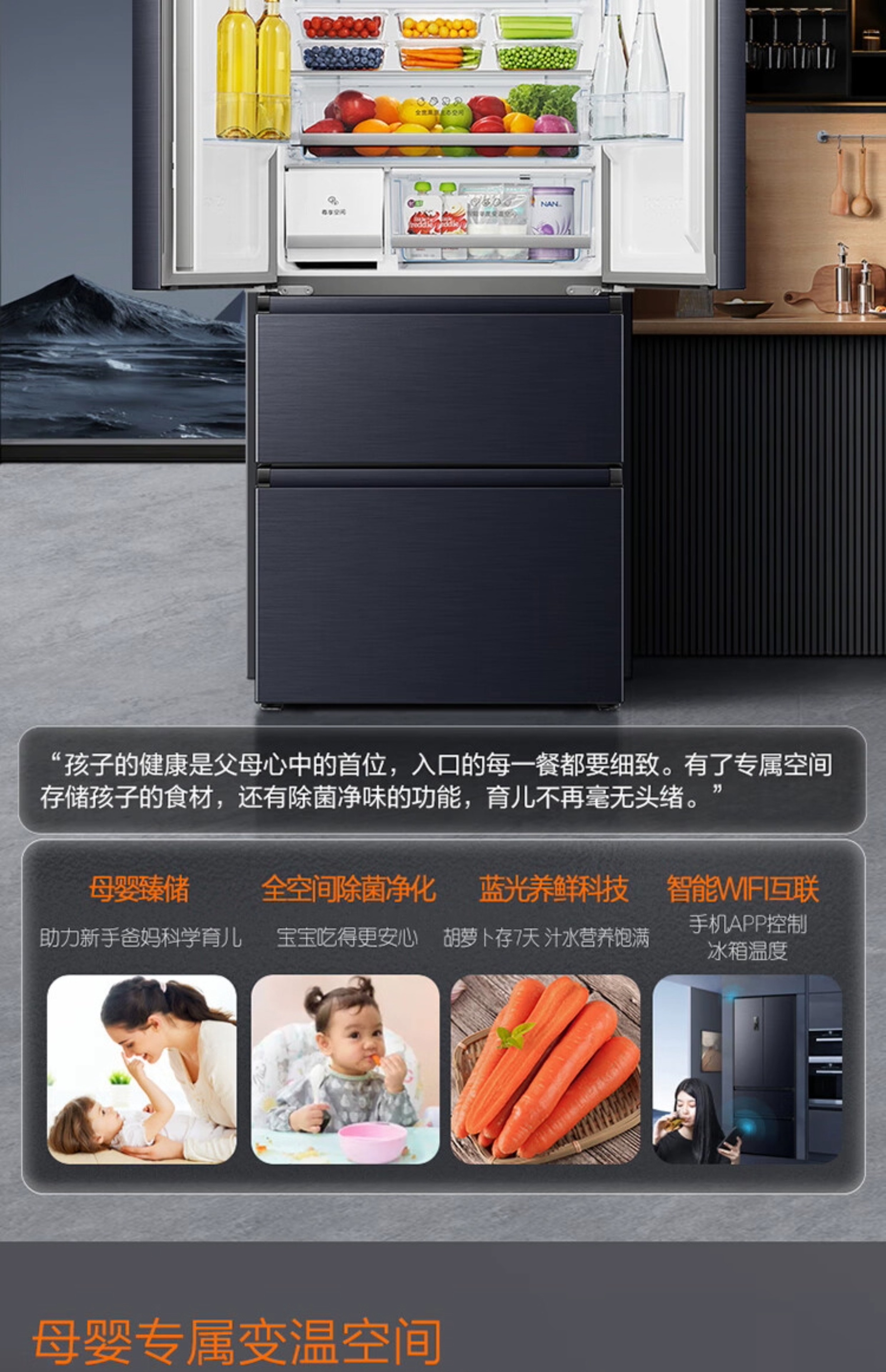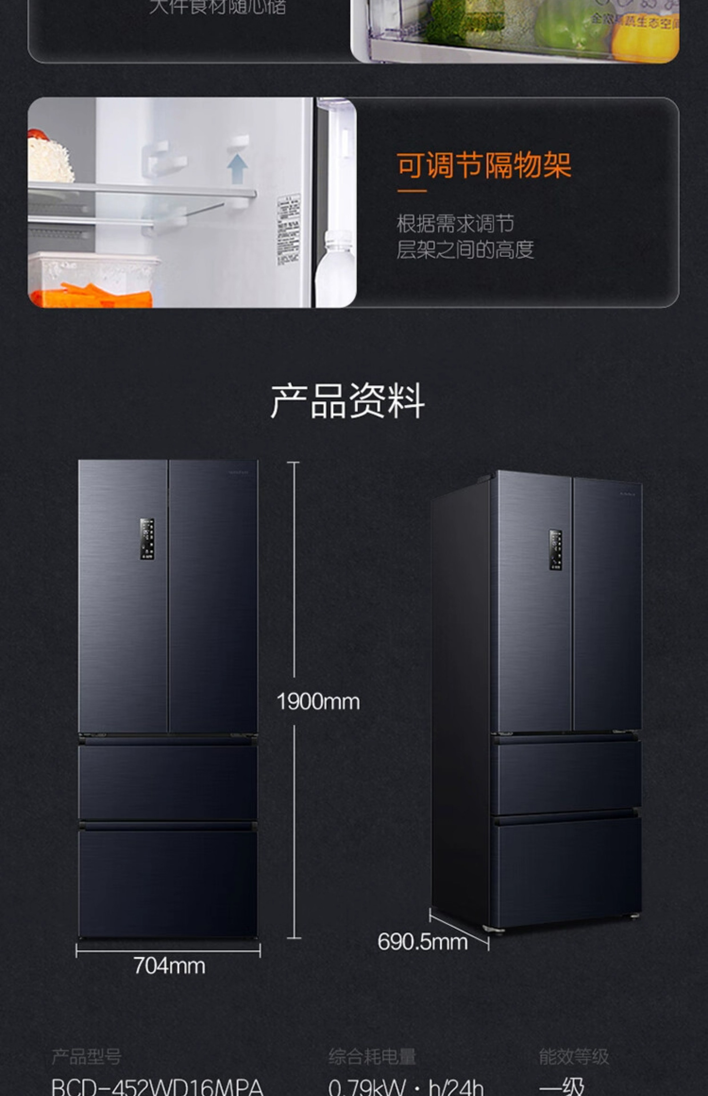 容声(Ronshen)452L法式多门风冷无霜母婴大容量智能冰箱BCD-452WD16MPA单位:台 黑色
