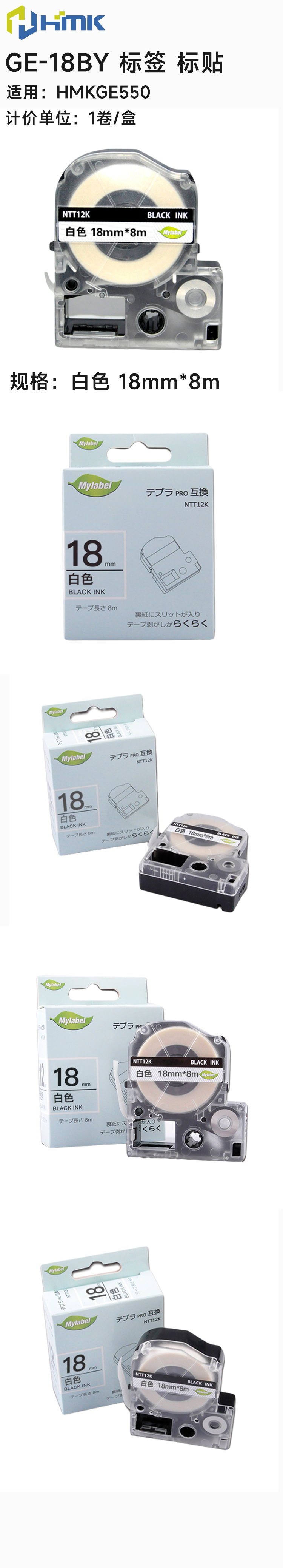 HMK GE-18BY 18mm*8米 标贴 1.00 个/盒 (计价单位:盒) 白色 白色