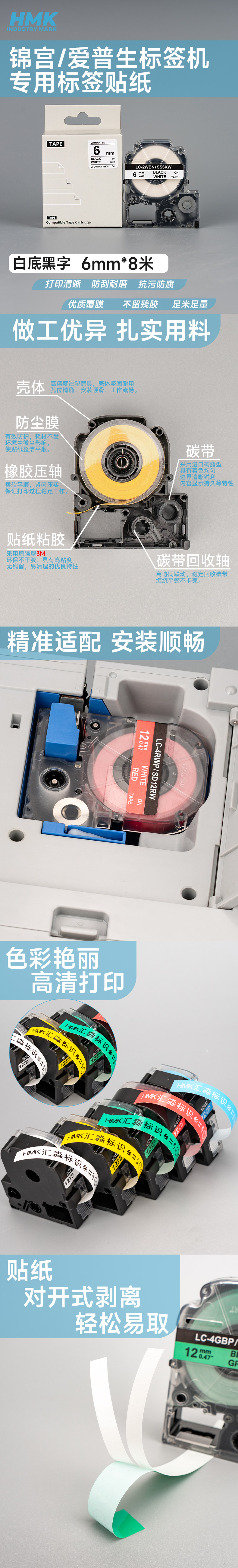 HMK HMSS06K 6mm 标签机色带 1.00 个/盒 (计价单位:盒) 白色 白色