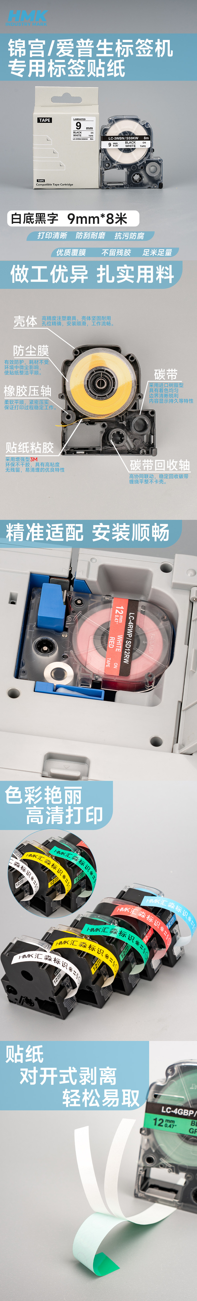 HMK HMSS09K 9mm 标签机色带 1.00 个/盒 (计价单位:盒) 白色 白色
