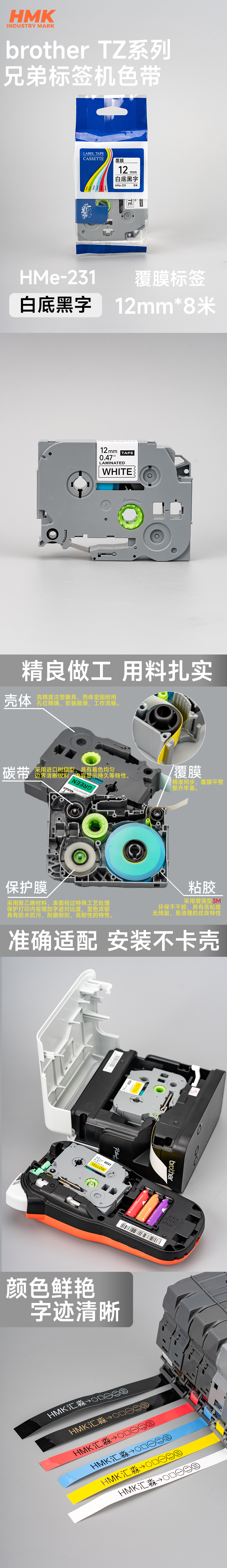 HMK HMTZE-231 12mm 色带 1.00 个/盒 (计价单位:盒) 白色 白色