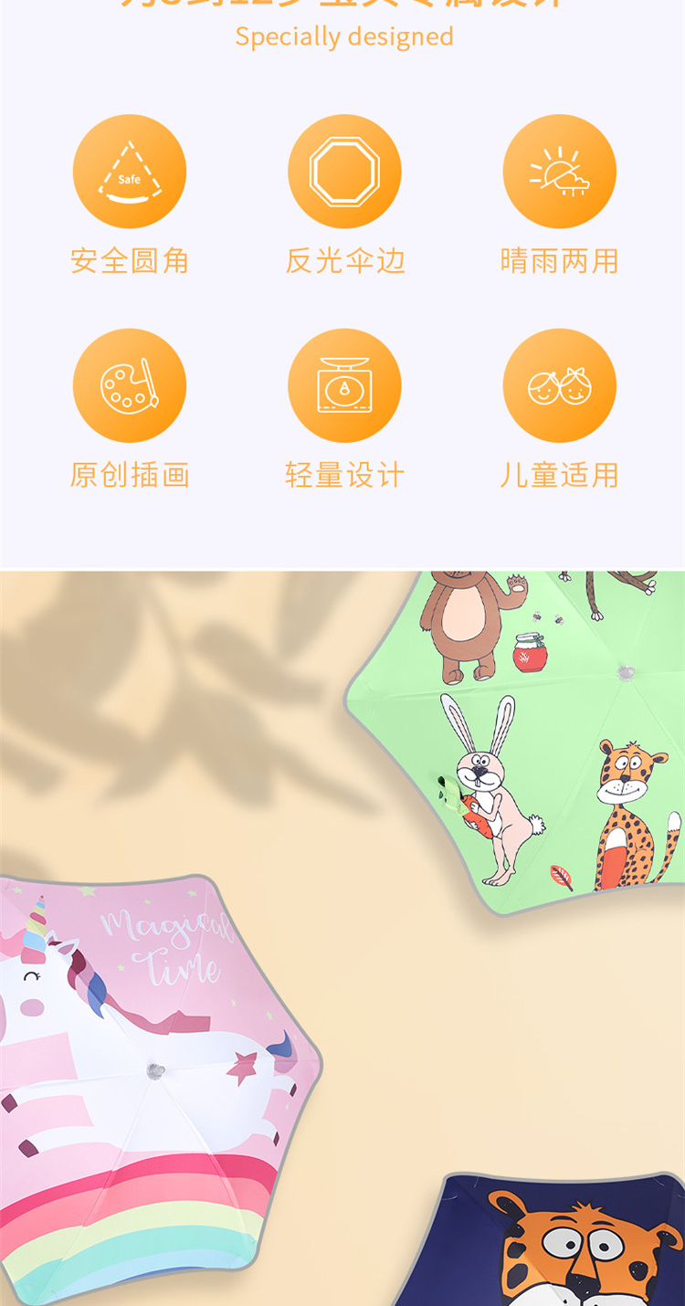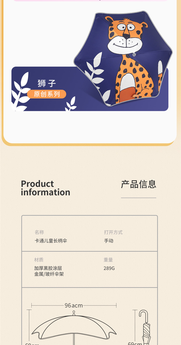 美度儿童伞圆角安全式小学生雨伞M6013 50cm*6K/把 豹子