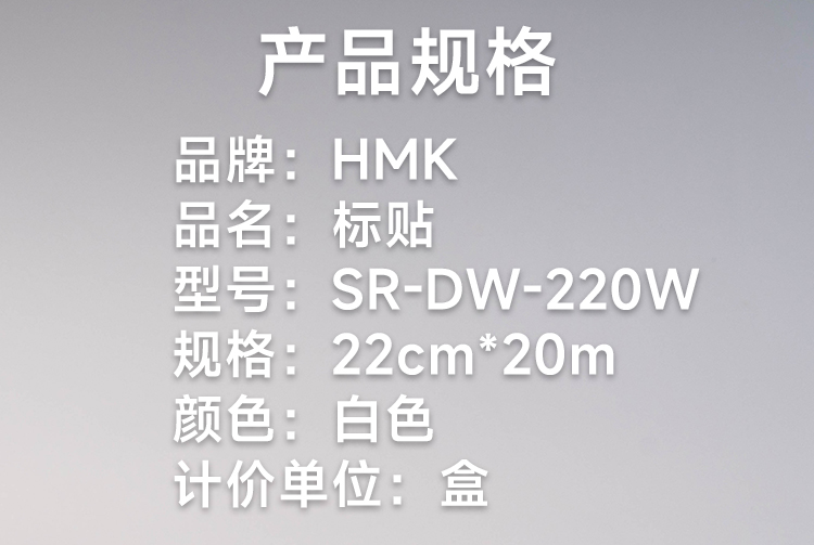 HMK SR-DW-220W 22cm*20m 1卷/盒 标贴 1.00 卷/盒 (计价单位:盒) 白色 白色